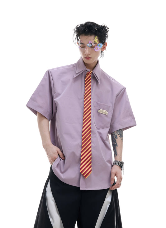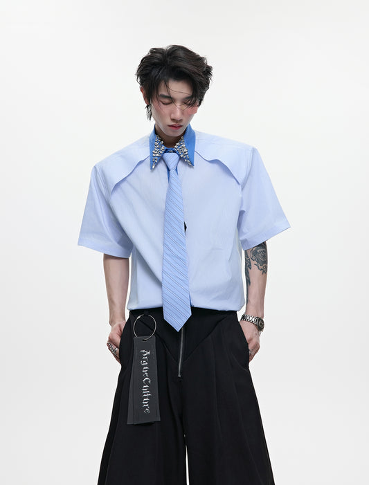 Double Collar Design Tie & Collared Short Sleeve Shirt WN18389