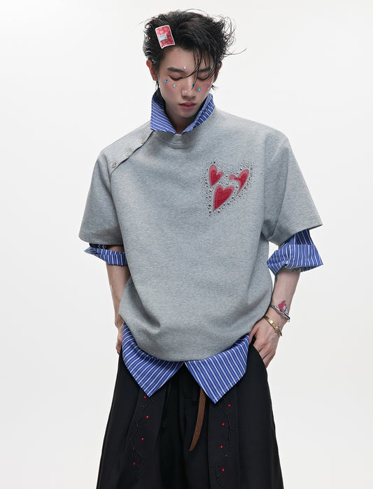 Metal Bead Heart Crack Short Sleeve T-Shirt WN18378