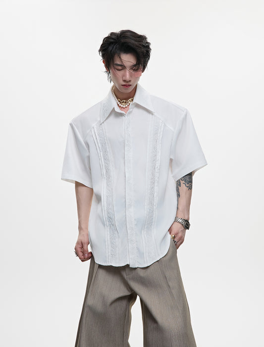 Embroidery Shoulder-Pad Short Sleeve Shirt WN18360