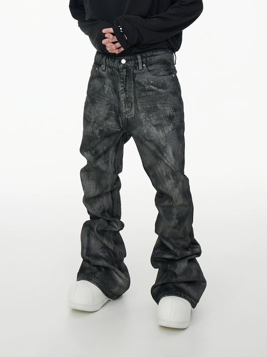 Coated Creased Texture Flare Denim Jeans WN16958