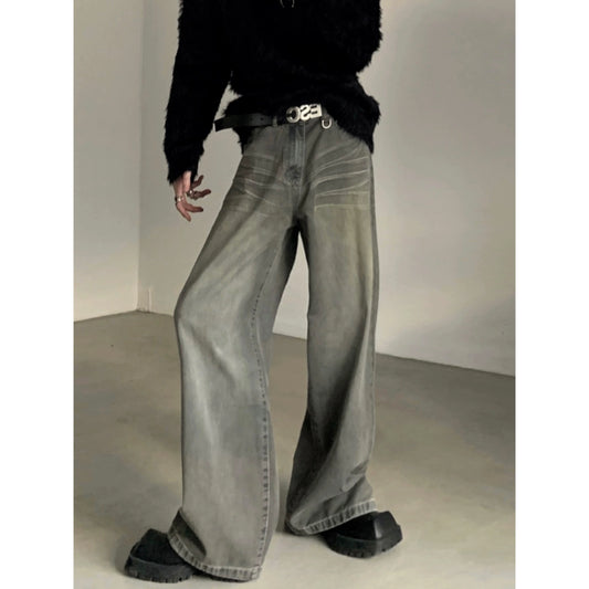 Washed Wide-Leg Straight Denim Jeans WN5945