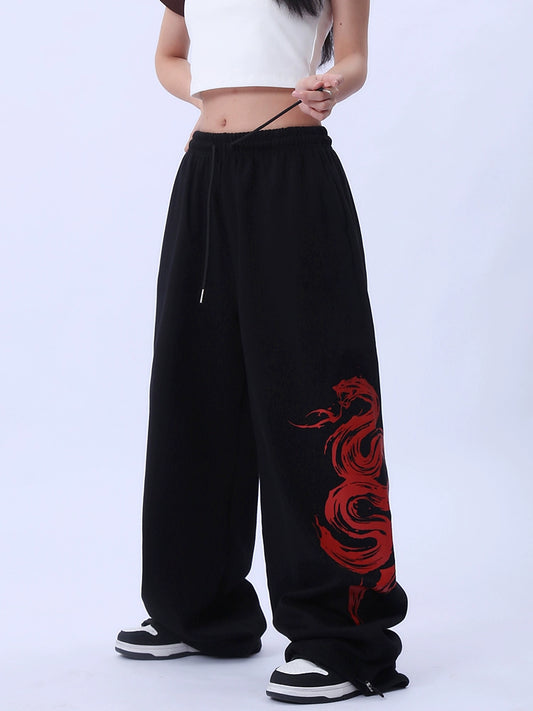 Graffiti Tie-Dye Fleece Lining Wide Leg Cargo Pants WN22463