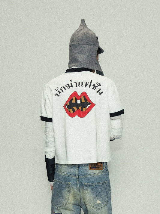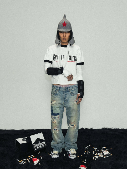 Graphic Letter Wash Damage Short Sleeve T-Shirt WN17265