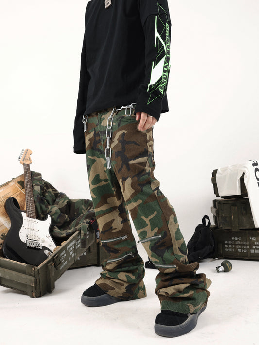 Camouflage & Zipper Design Flare Denim Jeans WN17242