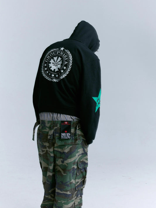 Washed Gradient Multi-Pocket Camouflage Patchwork Cargo Denim Jeans WN17261