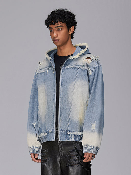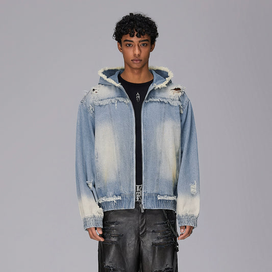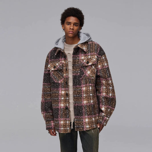 Hooded Fake Layered Large Pockets Wax Dye Coat WN22420