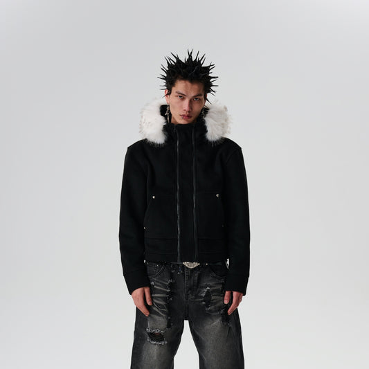 Fake Fur Stand Neck Zipper Jacket WN22647