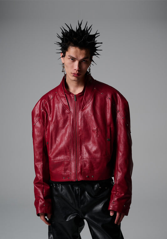 PU Leather Fake Layered Studs Design Tailored Jacket & Wide Leg Trousers Setup WN22648
