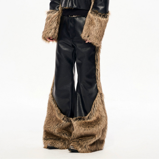 PU Leather Fake Fur Jacket & PU Leather Pants Setup WN22163