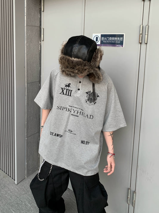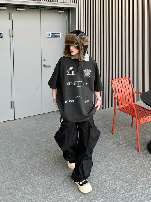 Badge Print Washed Polo Short Sleeve T-Shirt WN18138
