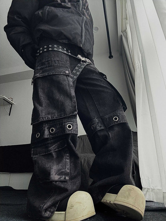 Washed Multi-Pocket Design Cargo Denim Jeans WN18128