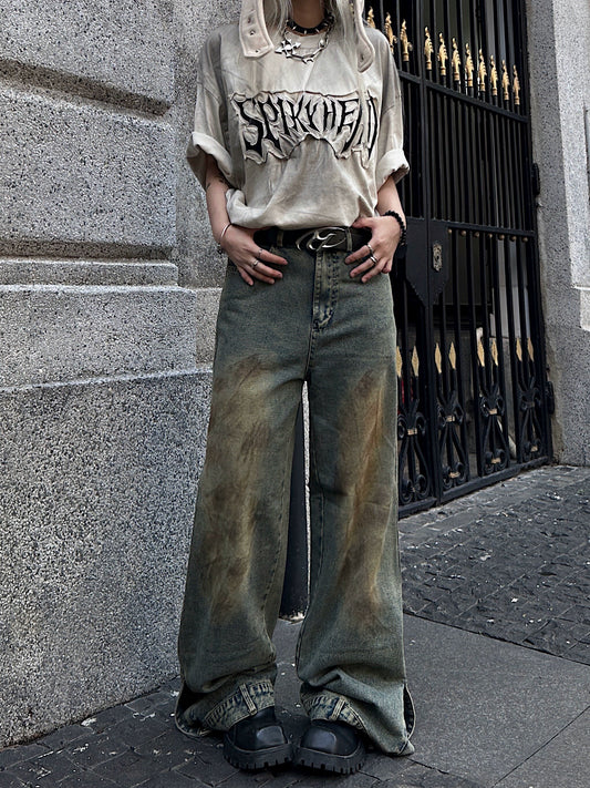 Mud Dye Design Wide Leg Denim Jeans WN18136