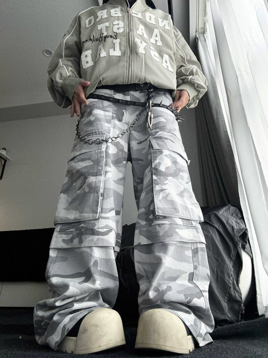 Camouflage Multi-Pocket Wide Leg Cargo Pants WN18154