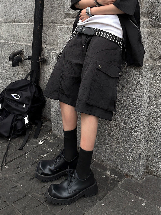 Wrinkle Texture Design Cargo Half Pants WN18148