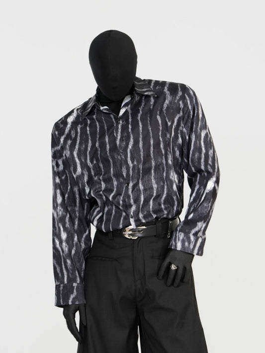 Wrinkle-Resistant Drape Stripe Tie-Dye Leopard Long Sleeve Shirt WN17387