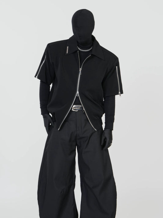 Double Zipper Shoulder-Pad Short Sleeve Jacket WN17418