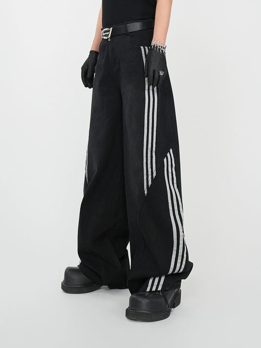 Side Stripe Curved Wide Leg Denim Jeans WN17396