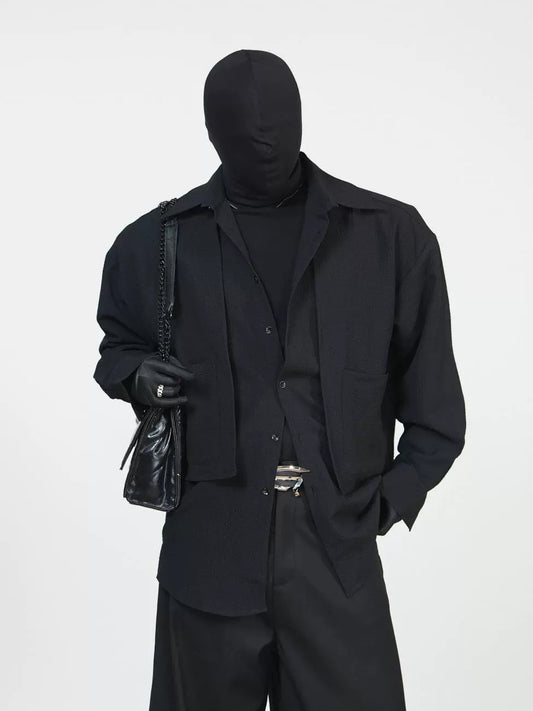 Fake Layered Plain Long Sleeve Shirt WN17407