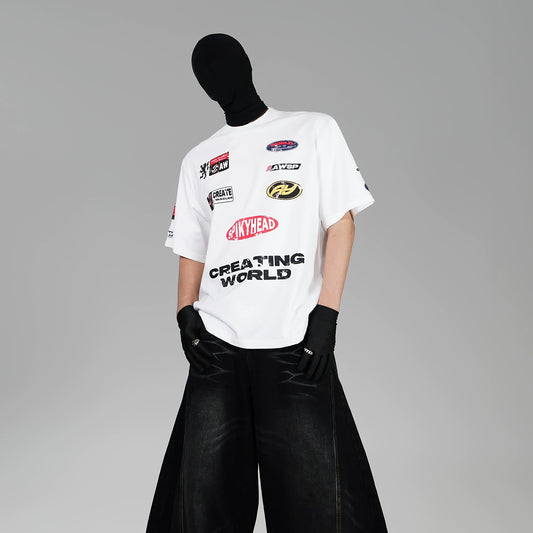 Graphic Letter Embroidery Oversize Short Sleeve T-Shirt WN17290