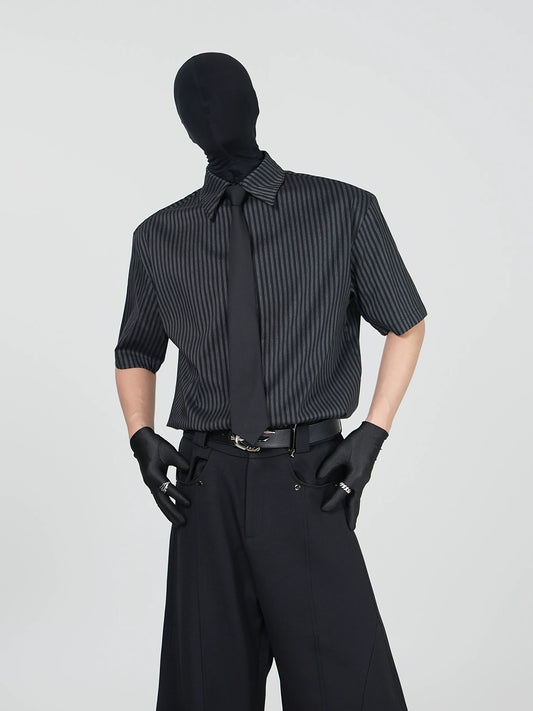 Vertical Stripe Tie Short Sleeve Shirt WN17277