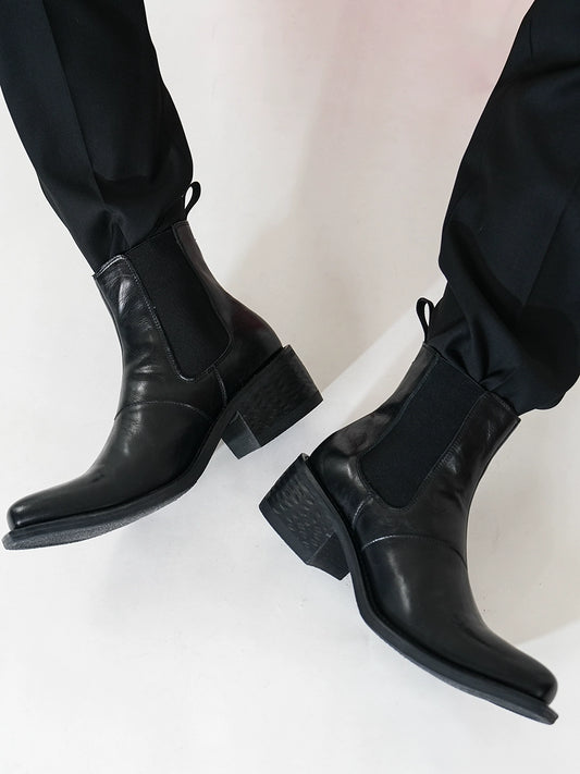 Platform Height-Increasing Mid-Top Genuine Leather Boots WN17314