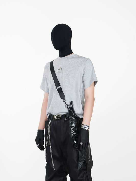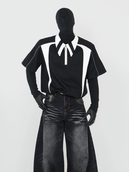 Contrast Half-Zip Turn-Down Collar Short Sleeve T-Shirt WN17311