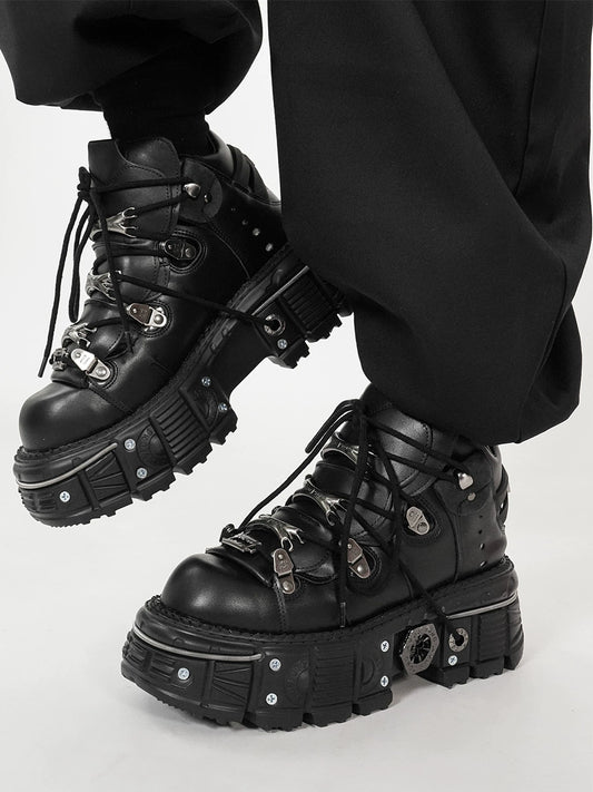 7cm Platform Tank Sole Genuine Leather Punk Shoes WN17284