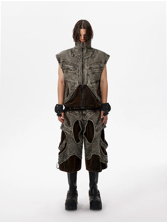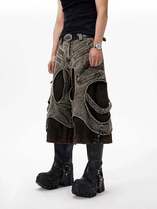 Deconstruction Shoulder-Pad Denim Jacket & Large Pocket Denim Jeans Setup WN21847