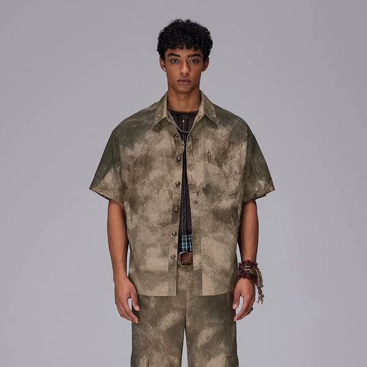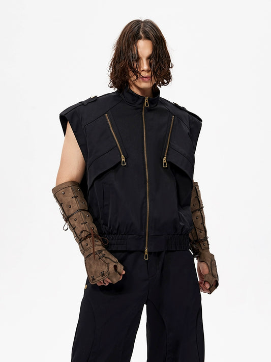 Four-Bar Spray Damage Stand Neck Zopper Jacket & Wide Leg Pants Set WN21811