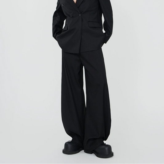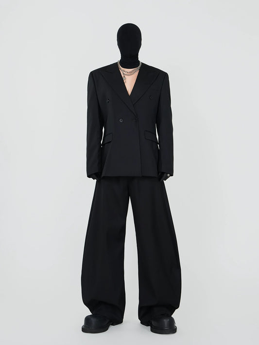 Striped Shoulder-pad Double-Breasted Tailored Jacket & Striped Wide Leg Trousers Setup WN21802