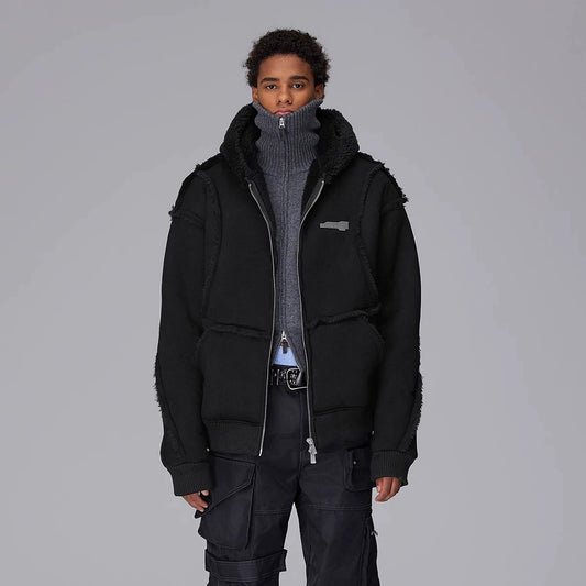Draped High-Neck Fake Layered Long Sleeve Shirt & Functional Multi-Pocket Waist Bag WN22458