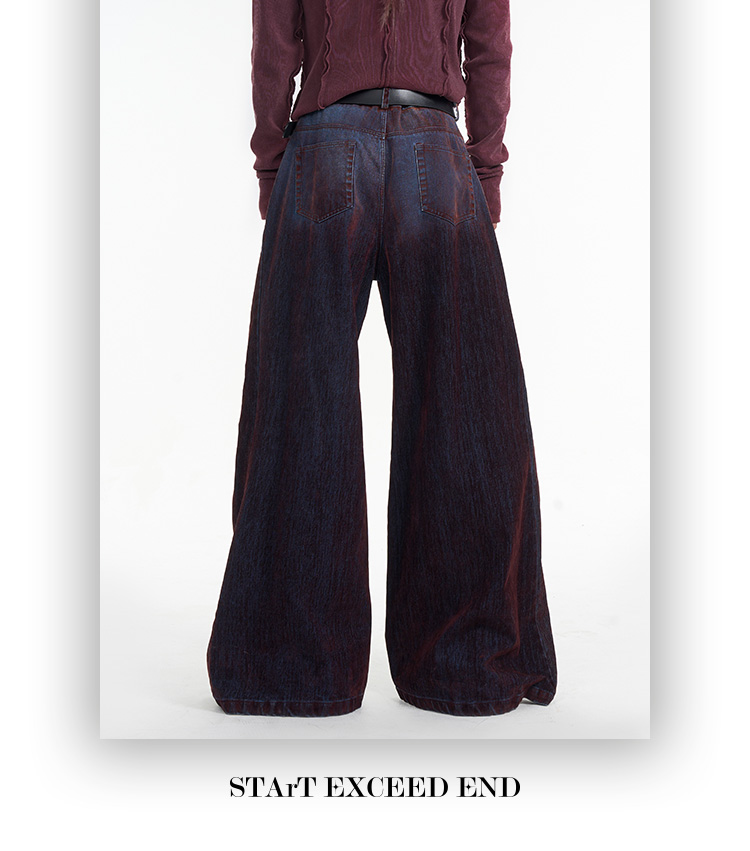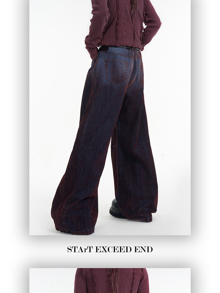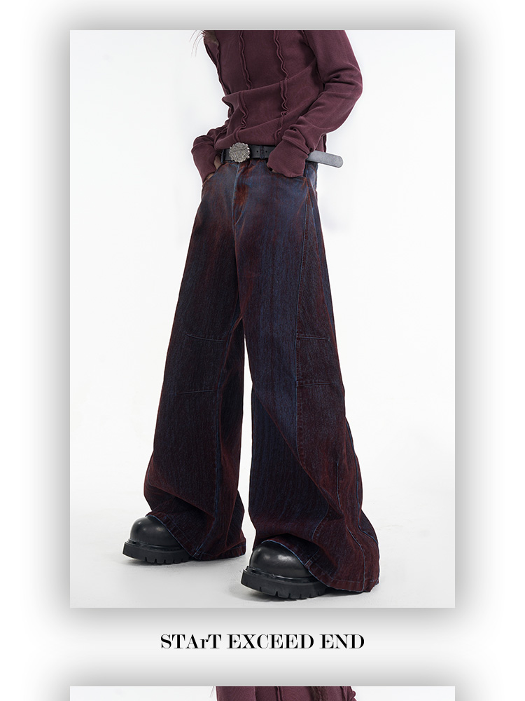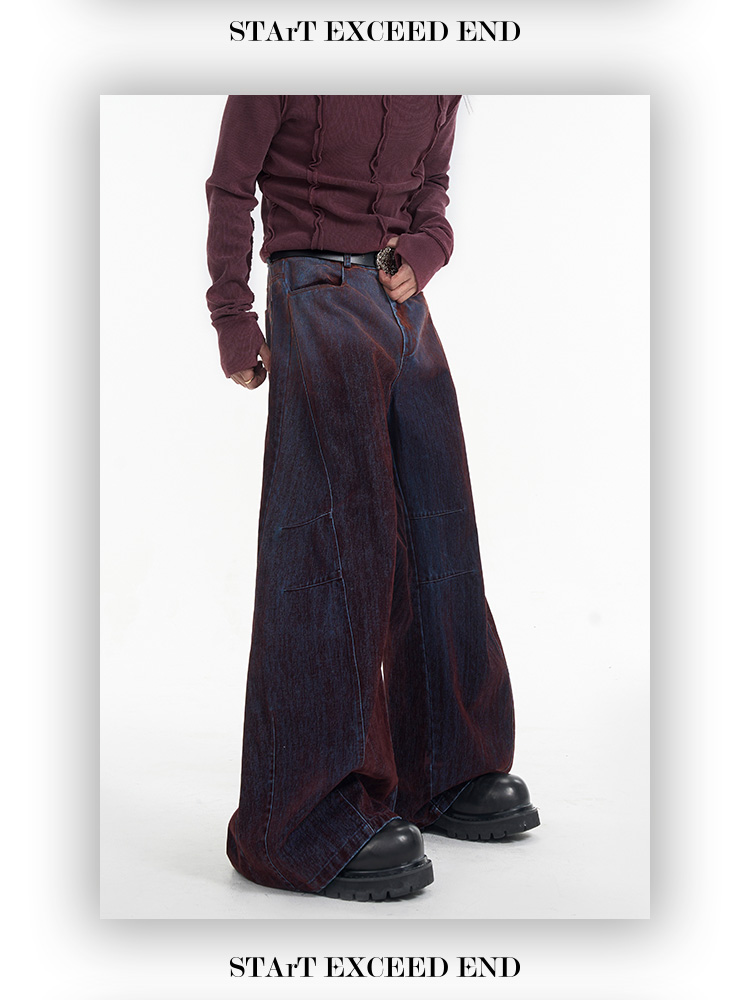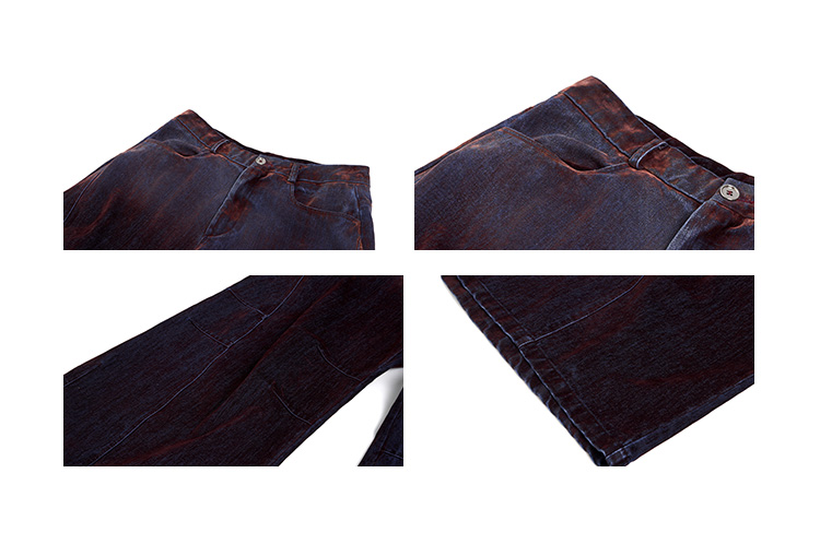 Velvet-Trimmed Brushed Patchwork Wide-Leg Denim Jeans WN12115