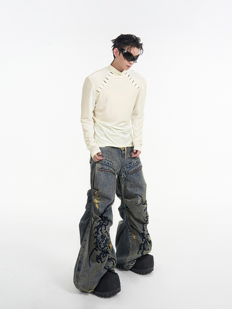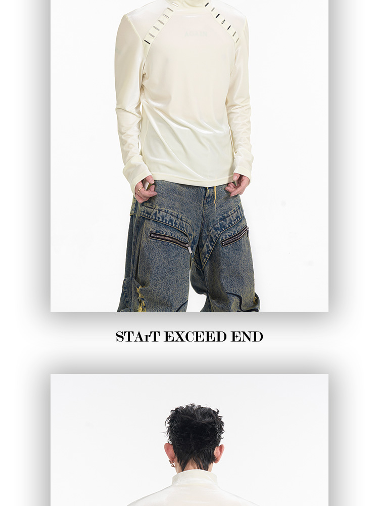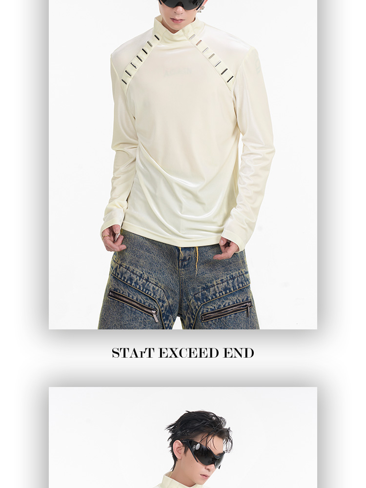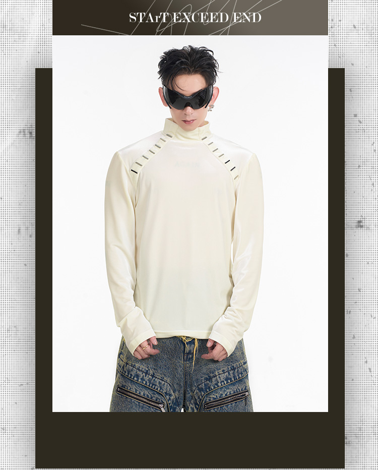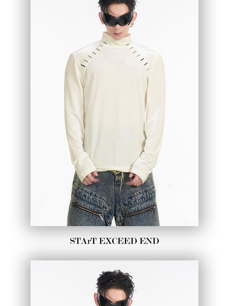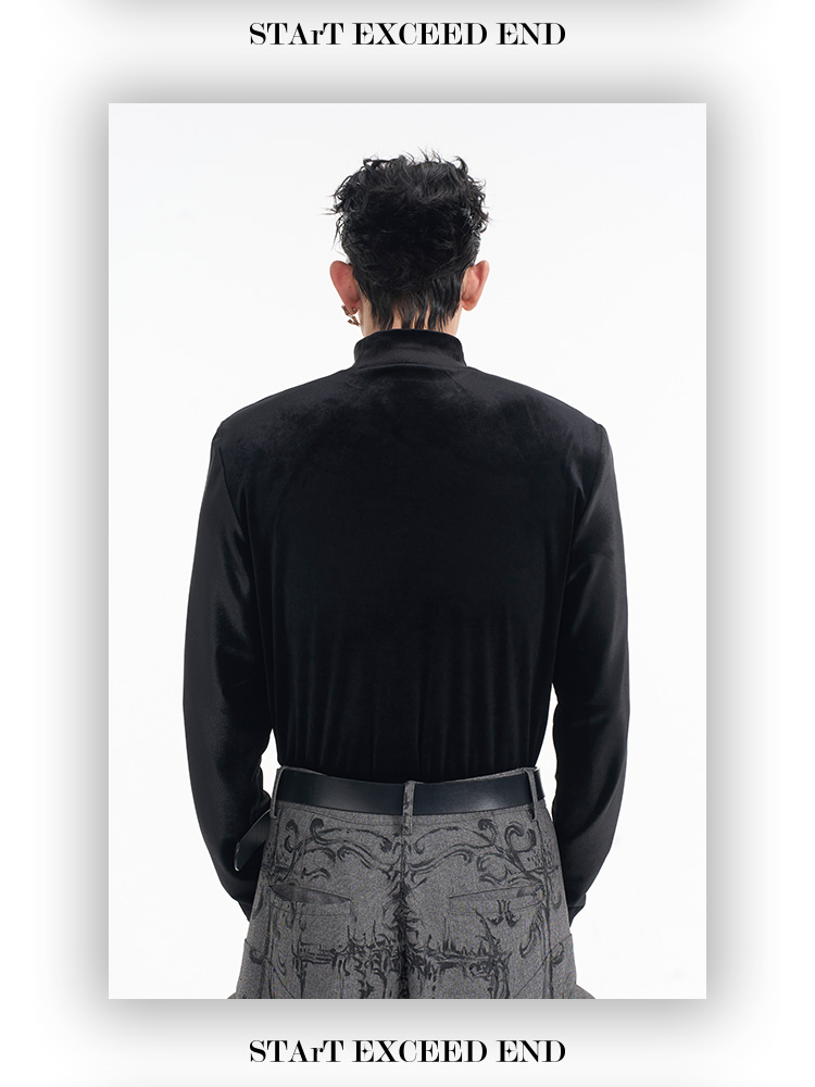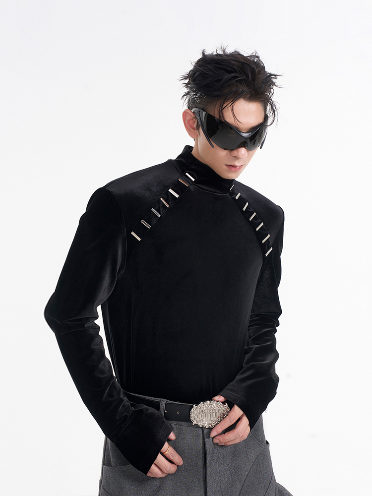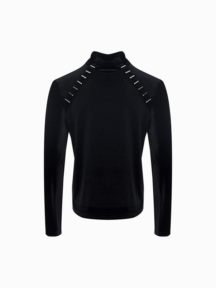 Velvet High-Neck Long Sleeve T-Shirt WN12146