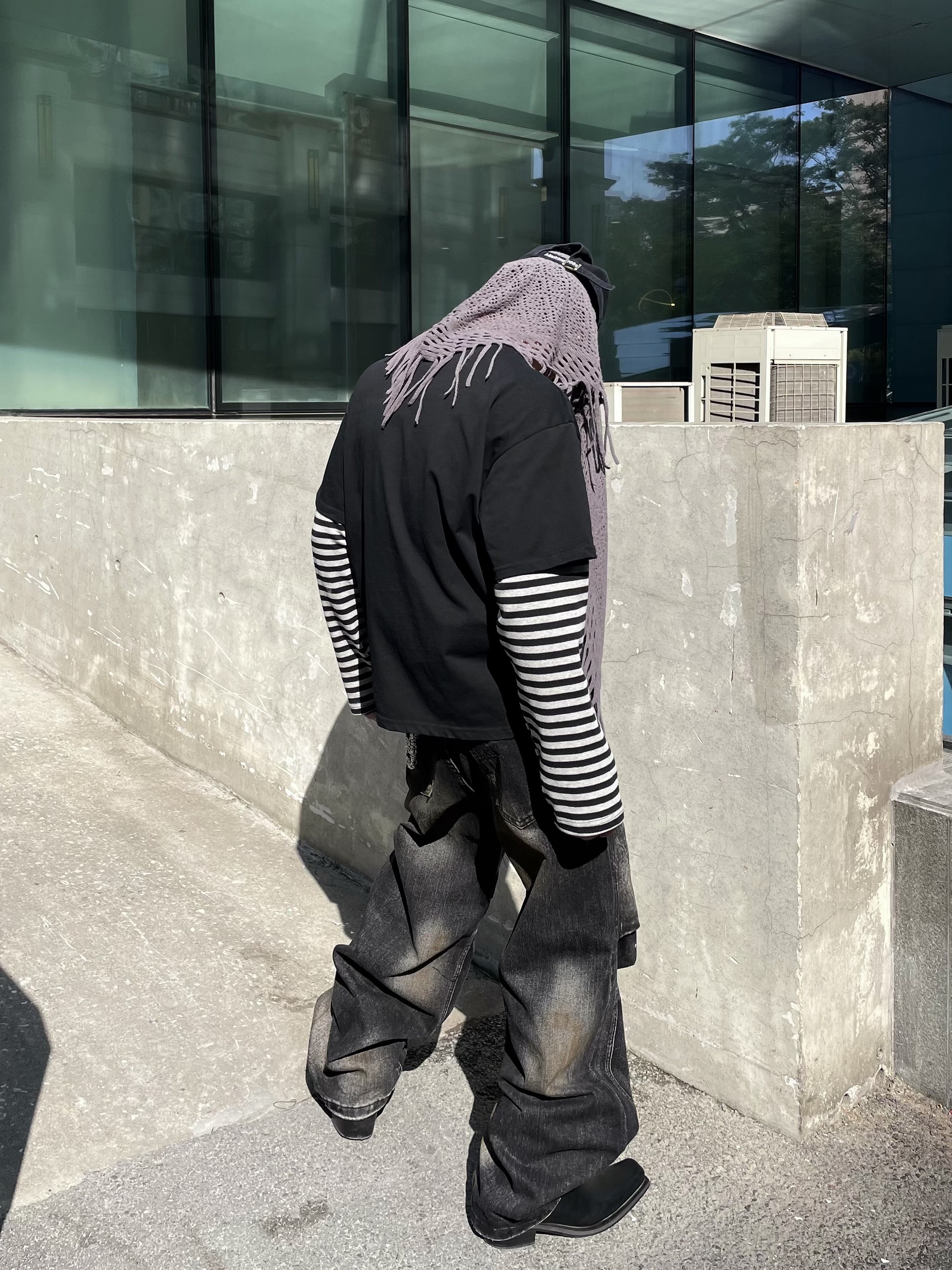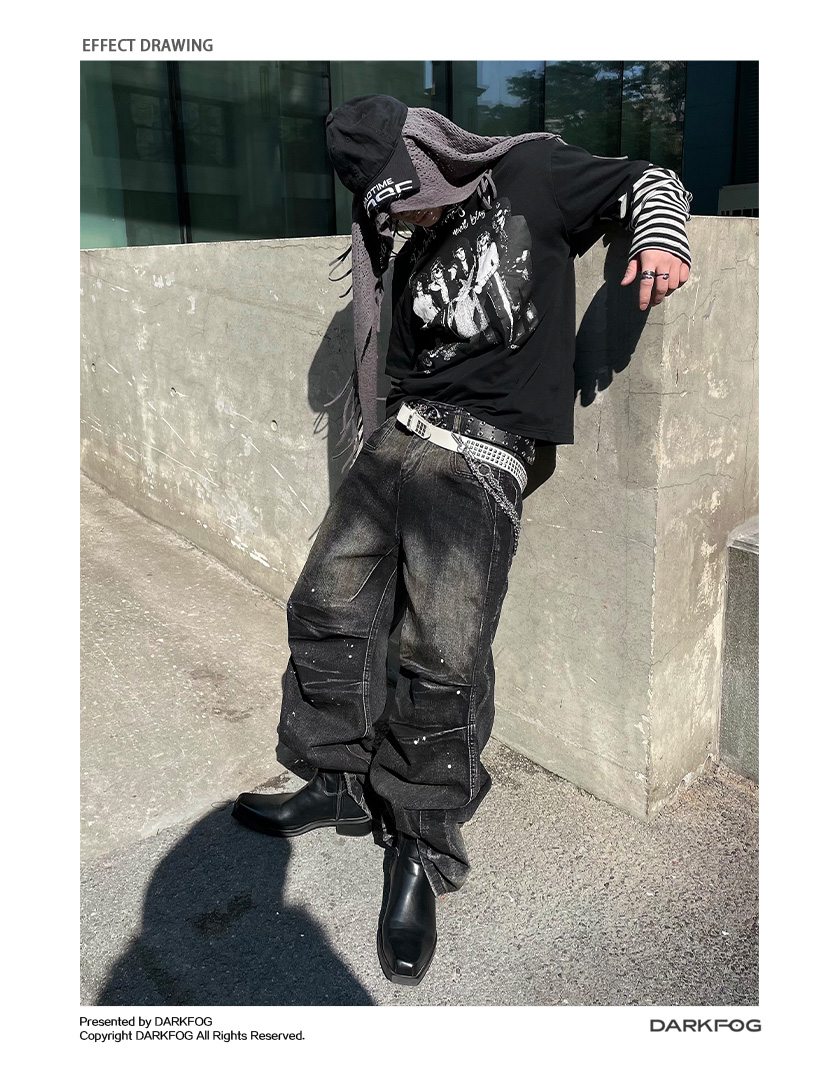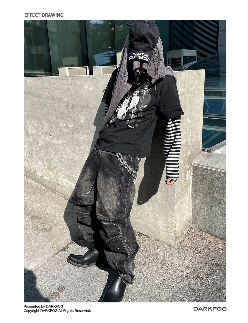 Rock Graphic Fake Layered Striped Long Sleeve T-Shirt WN12876