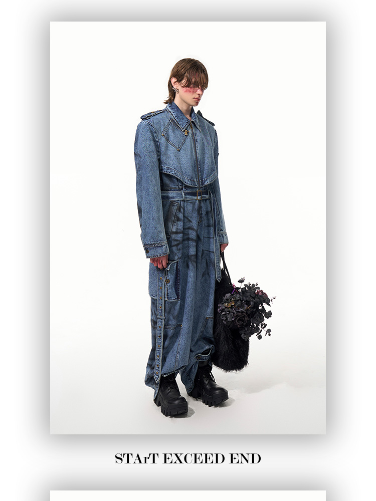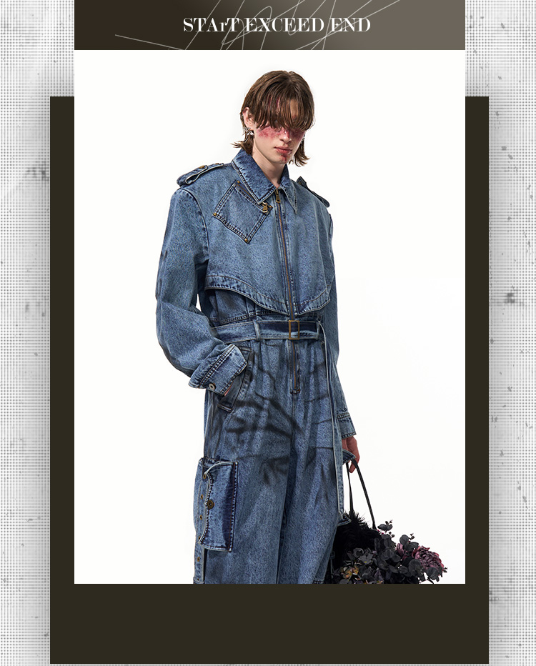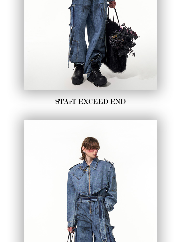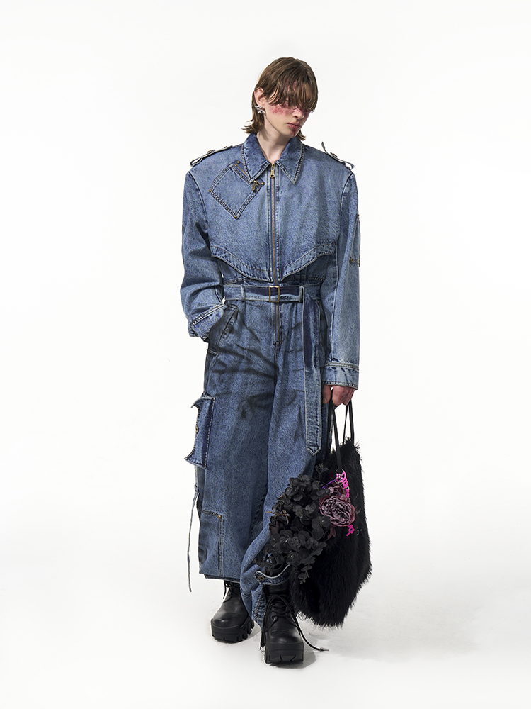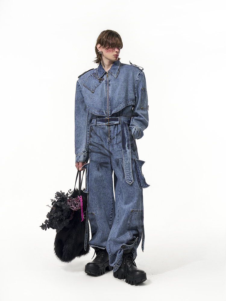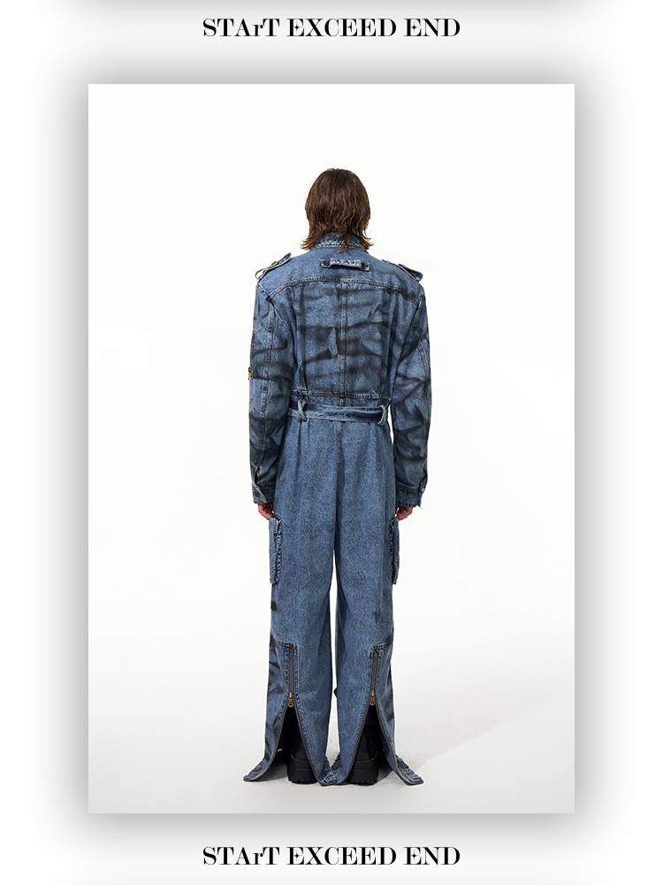Tie-dye Zipper Design Denim Coveralls Jumpsuit WN14821
