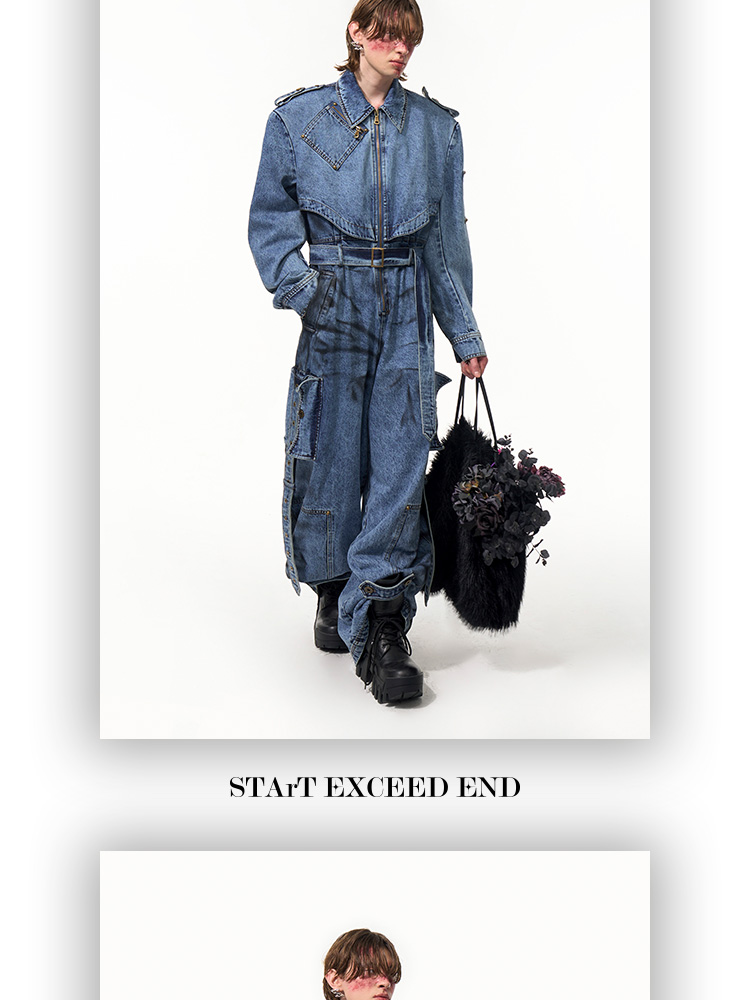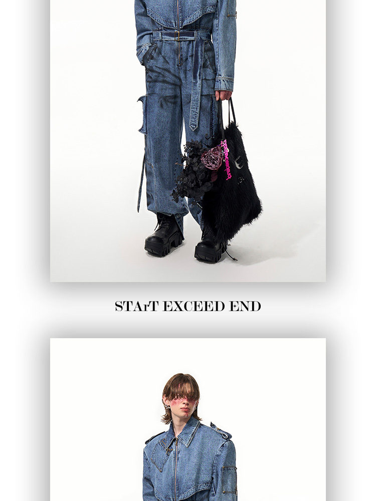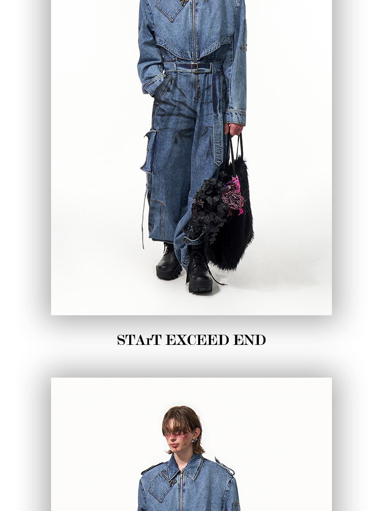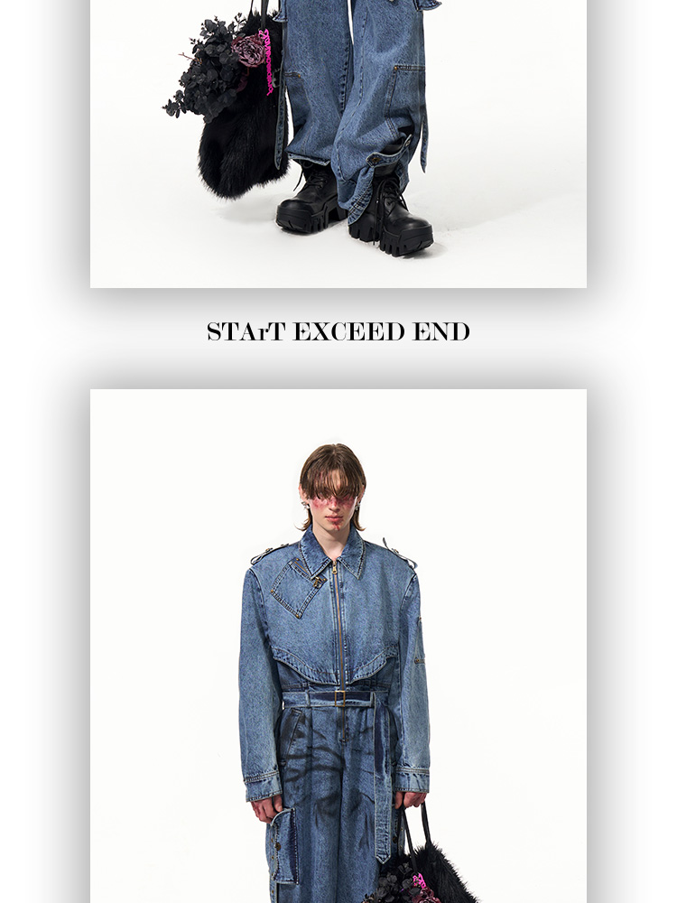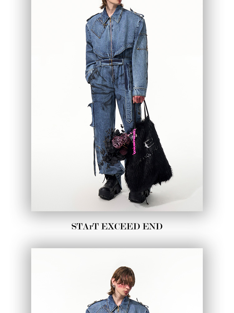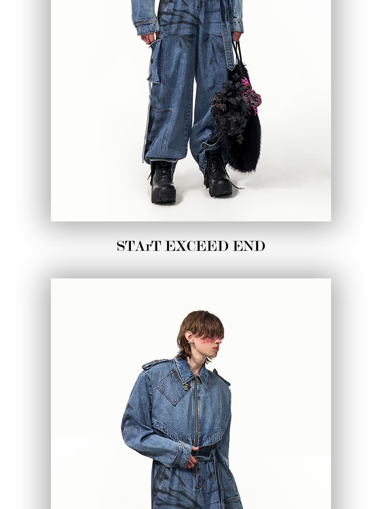 Tie-dye Zipper Design Denim Coveralls Jumpsuit WN14821