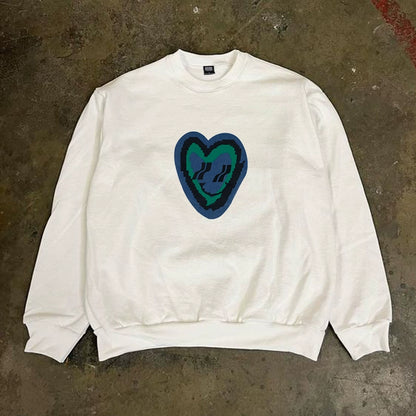 Oversize Heart Print Pullover Sweatshirt WN16436