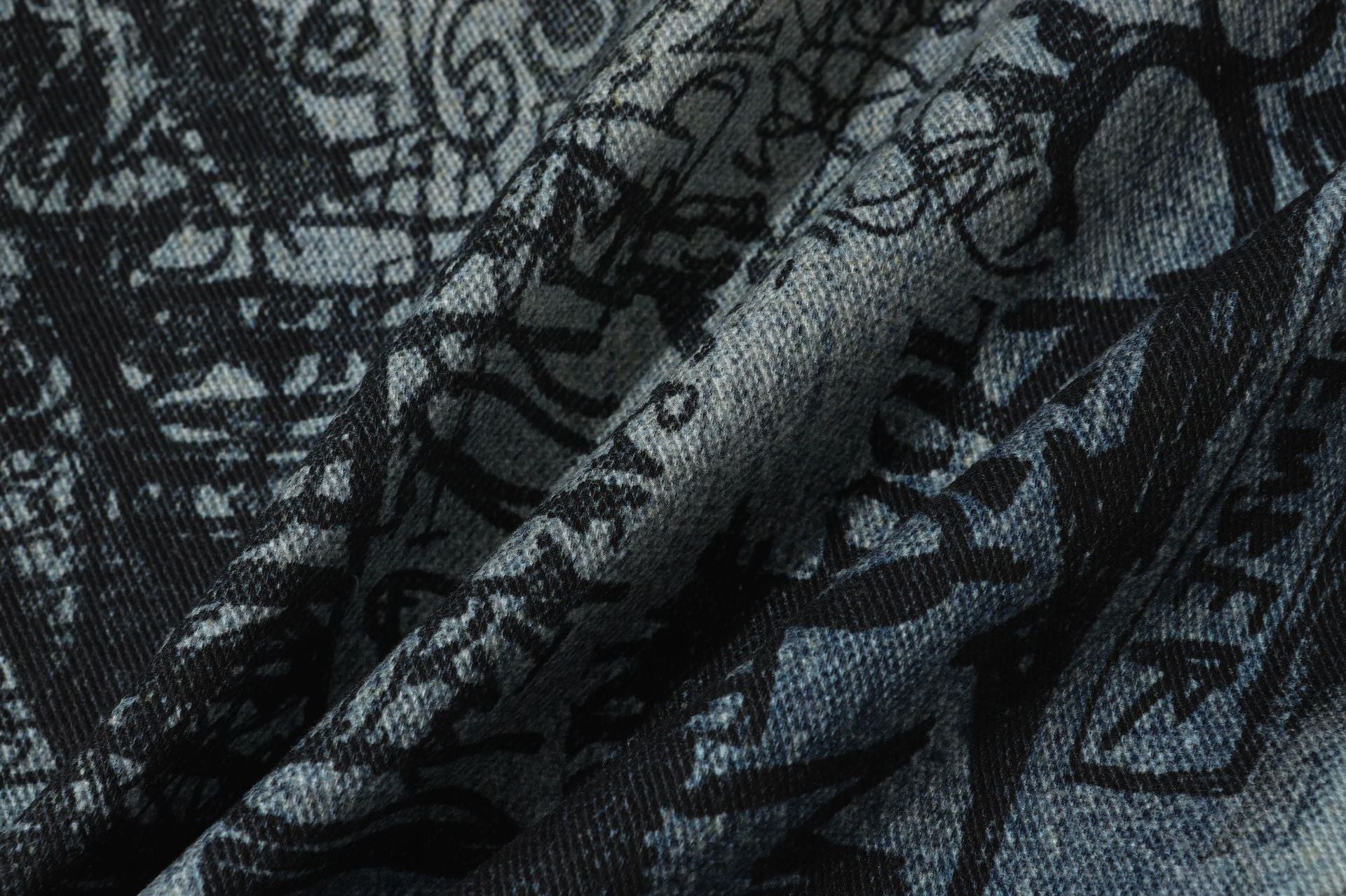 3D Graffiti Print Washed Wide Leg Denim Jeans WN18595