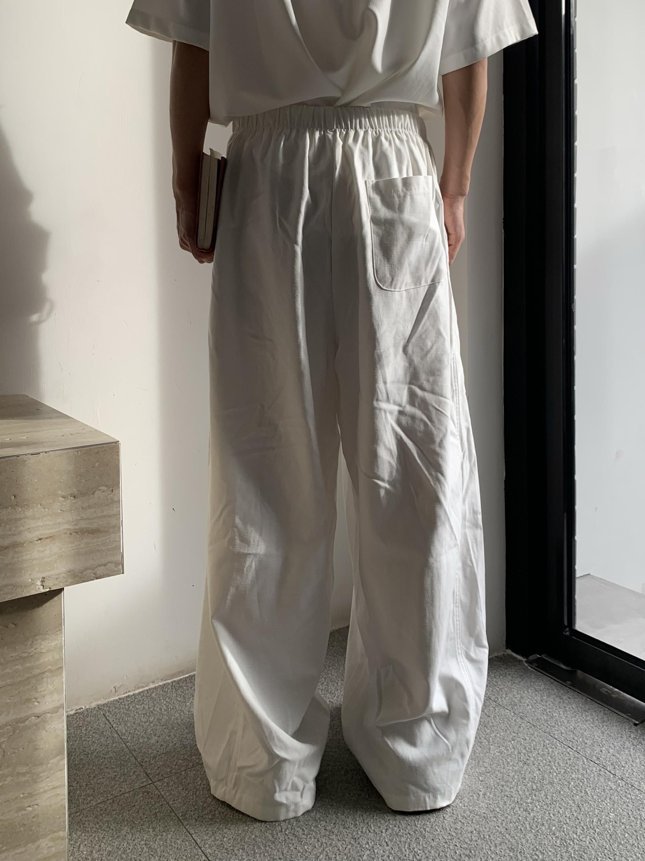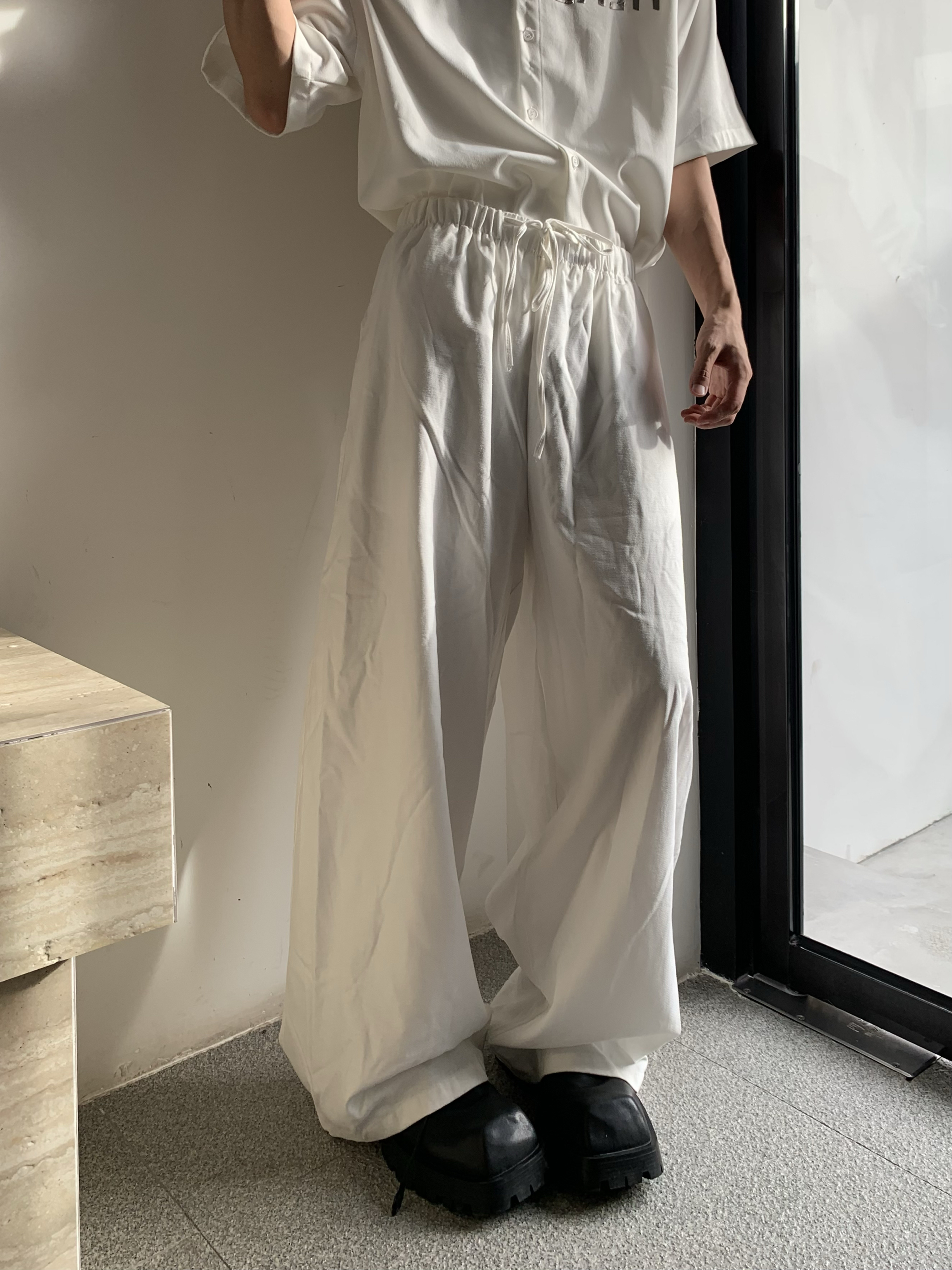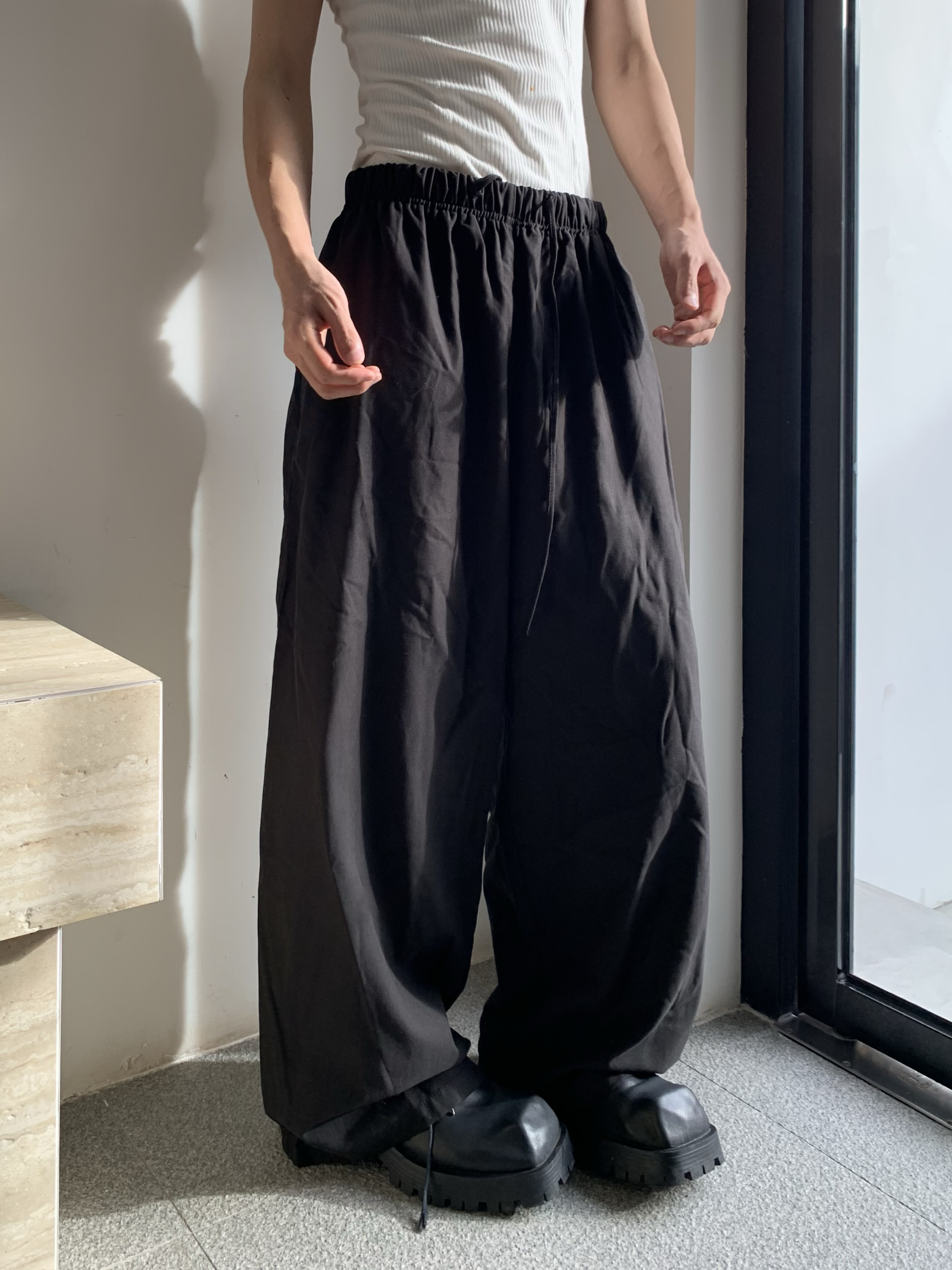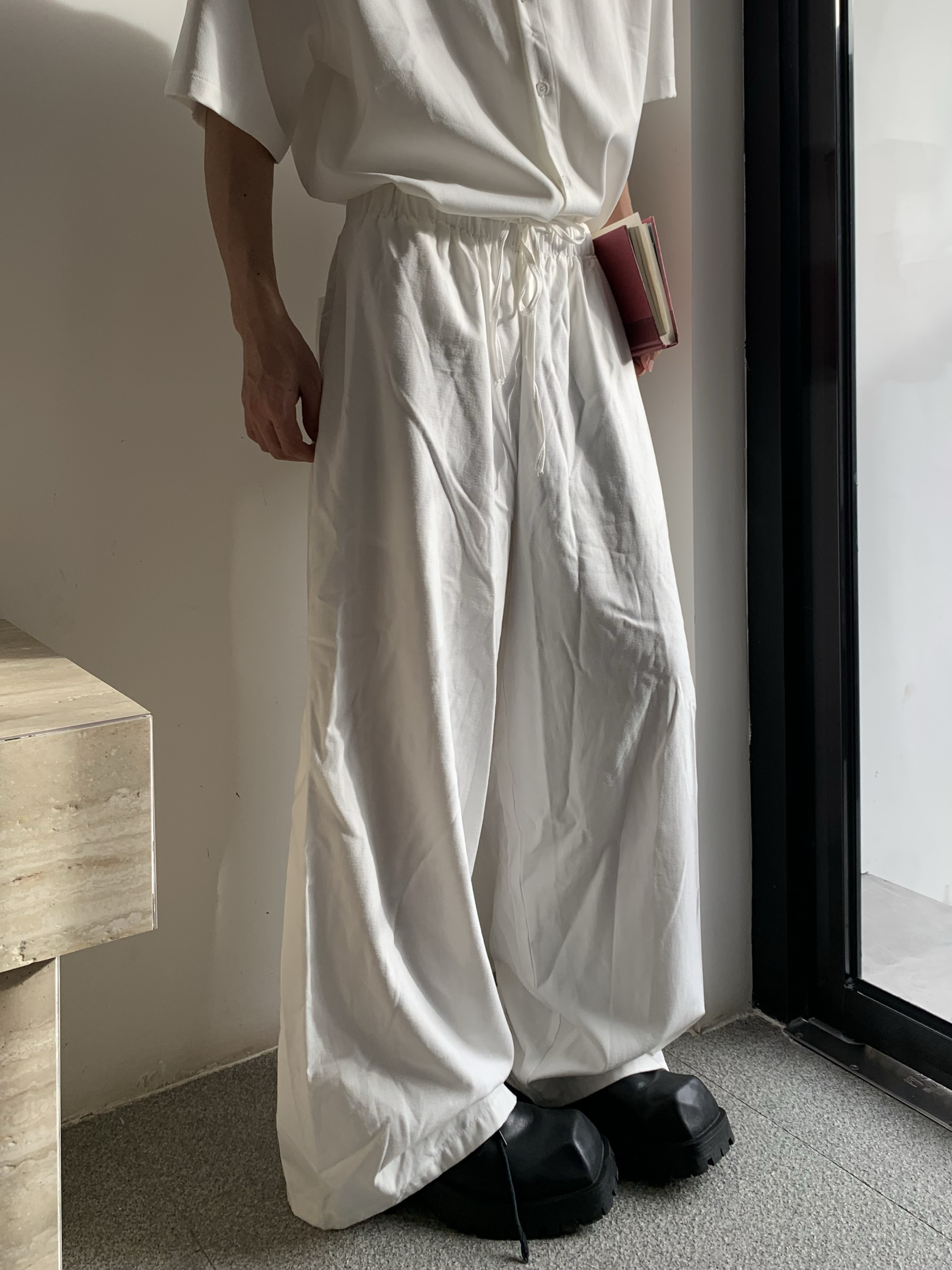 Washed Drawstring Elastic Waist Wide Leg Pants WN19730