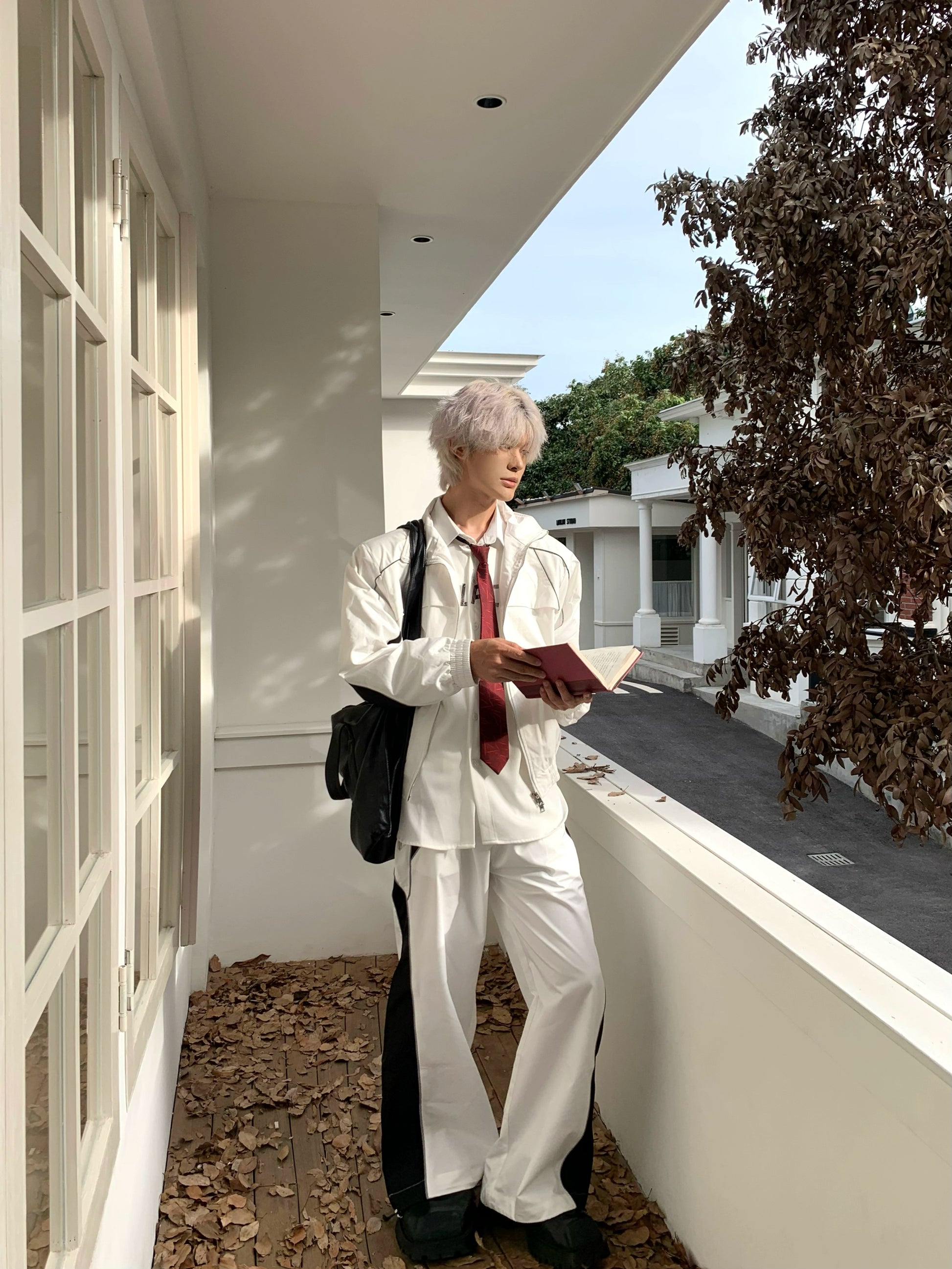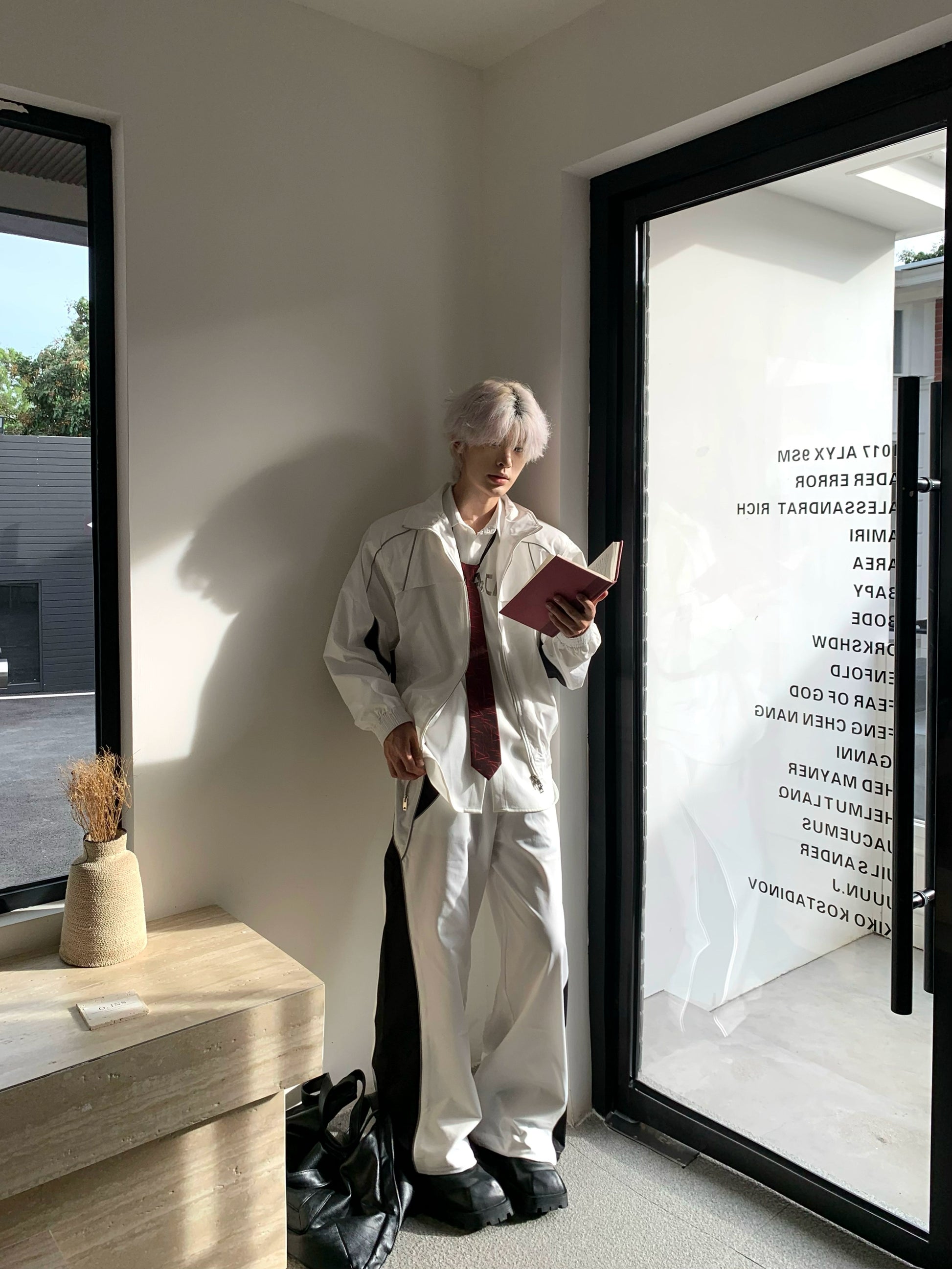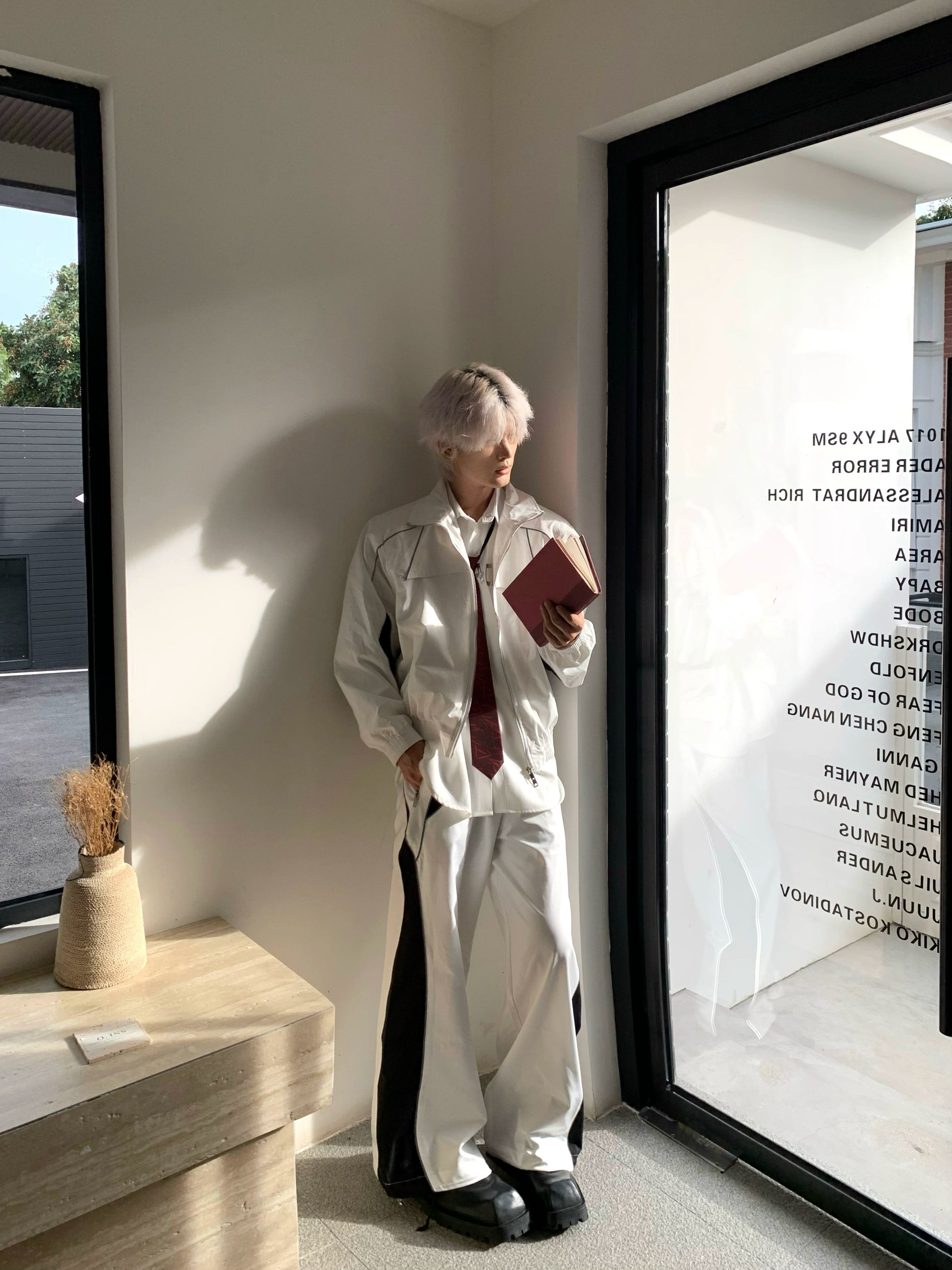 Reflective Patchwork Stand-Collar Jacket & Flare Pants Setup WN19757