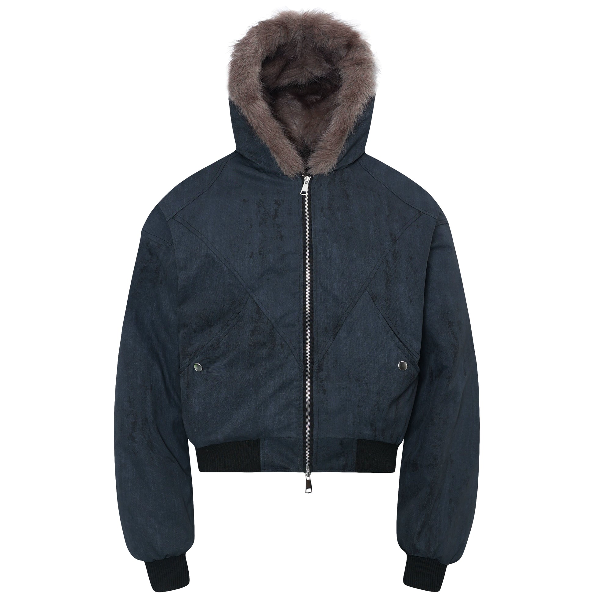 Hooded Zipper Plush Fake Fur Padded Jacket WN22214