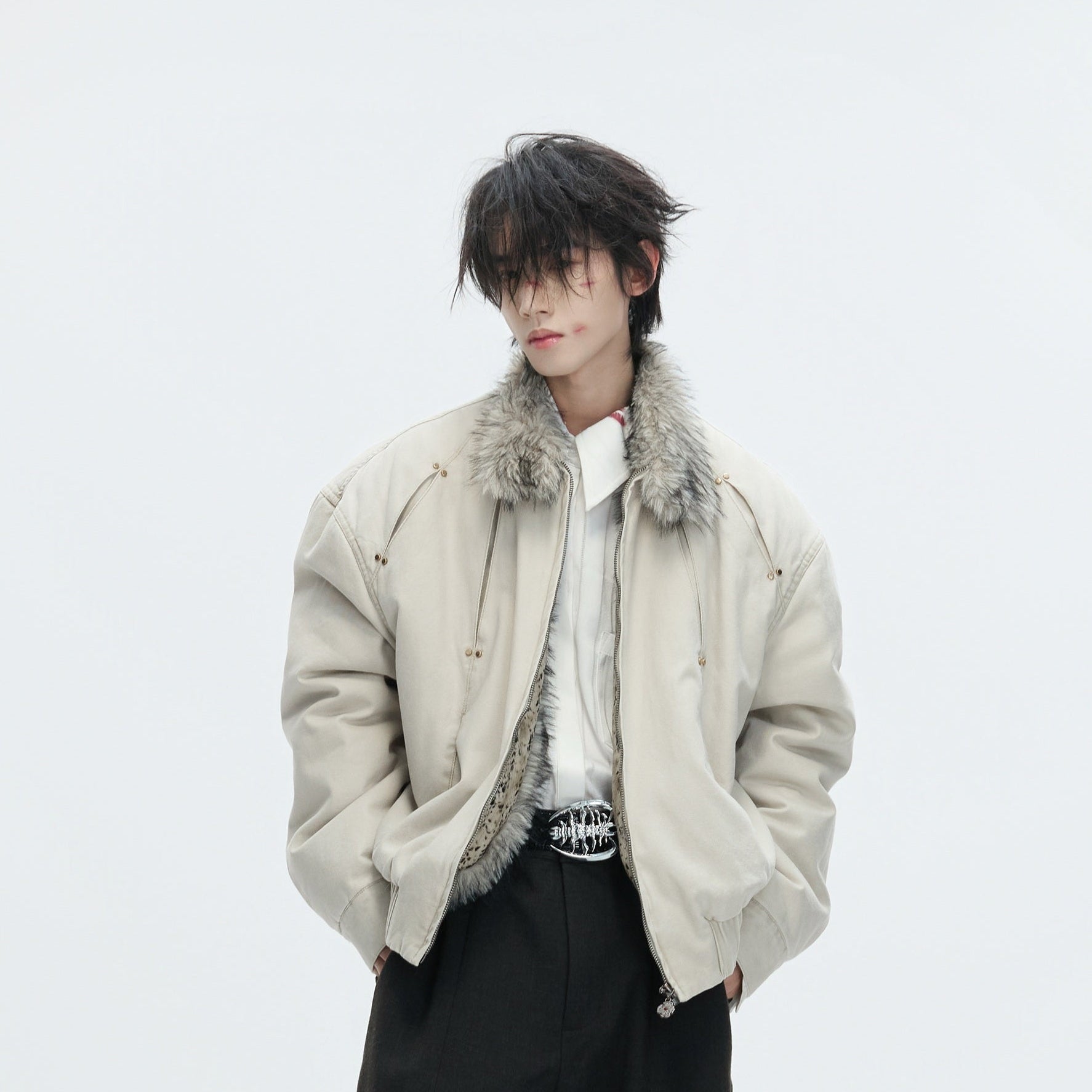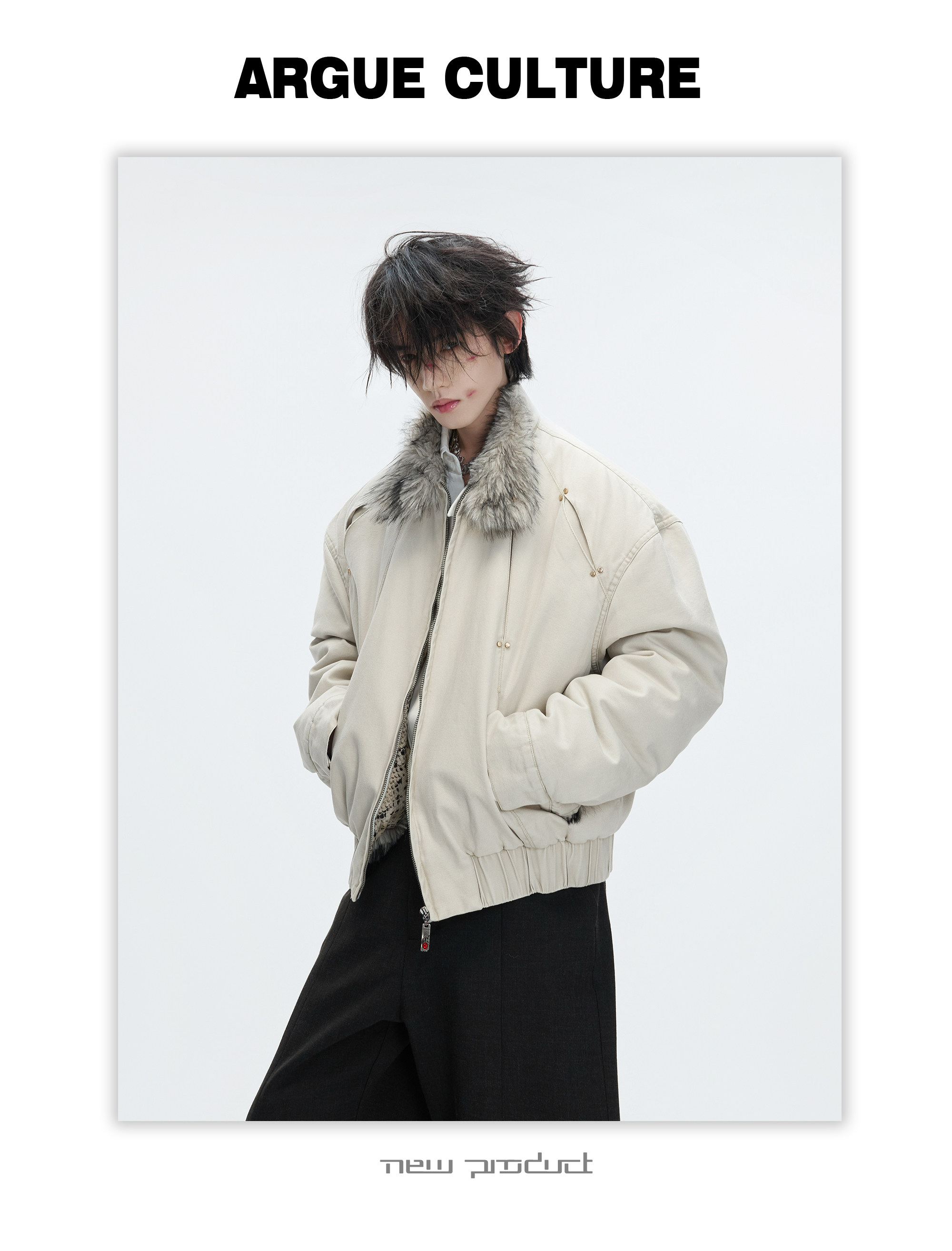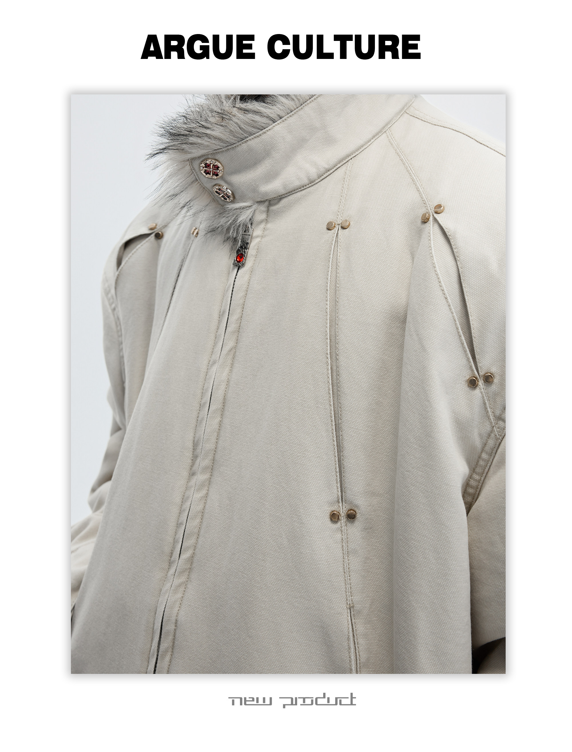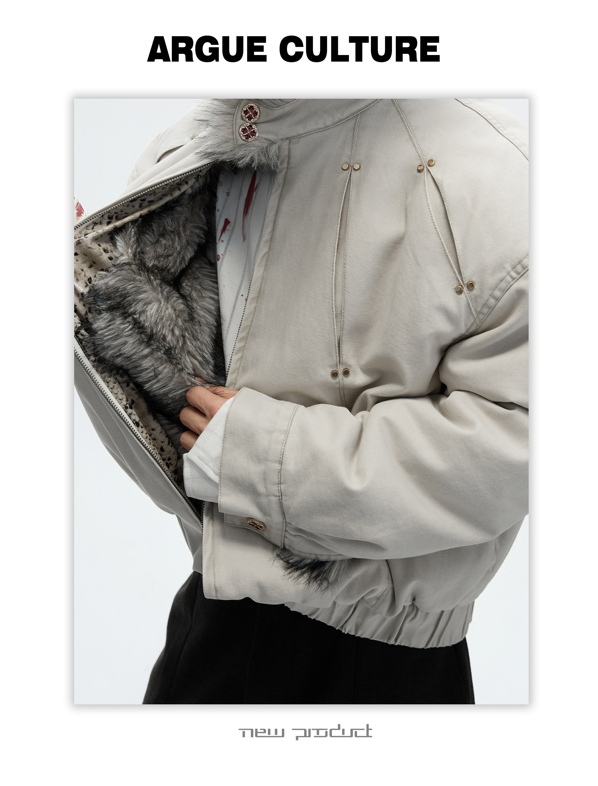 Fake Fur Collar Heavyweight Wash Canvas Puffer Jacket WN22624