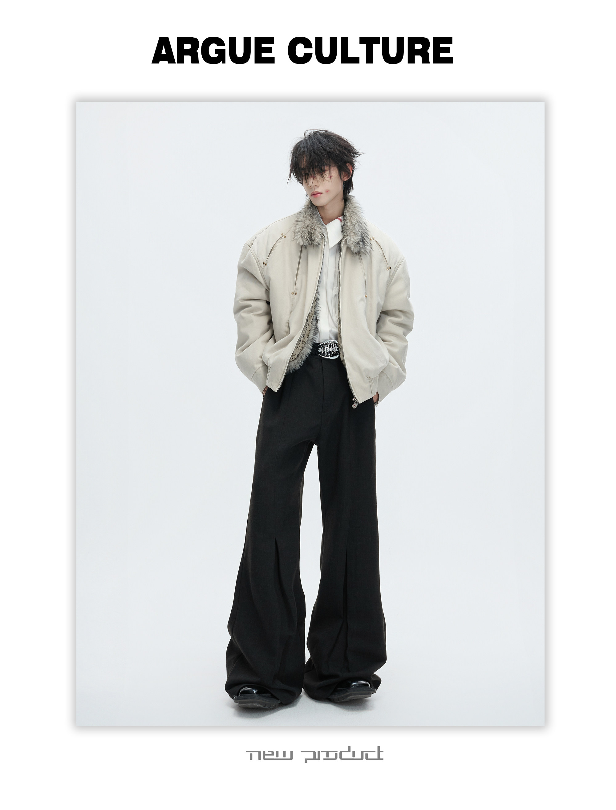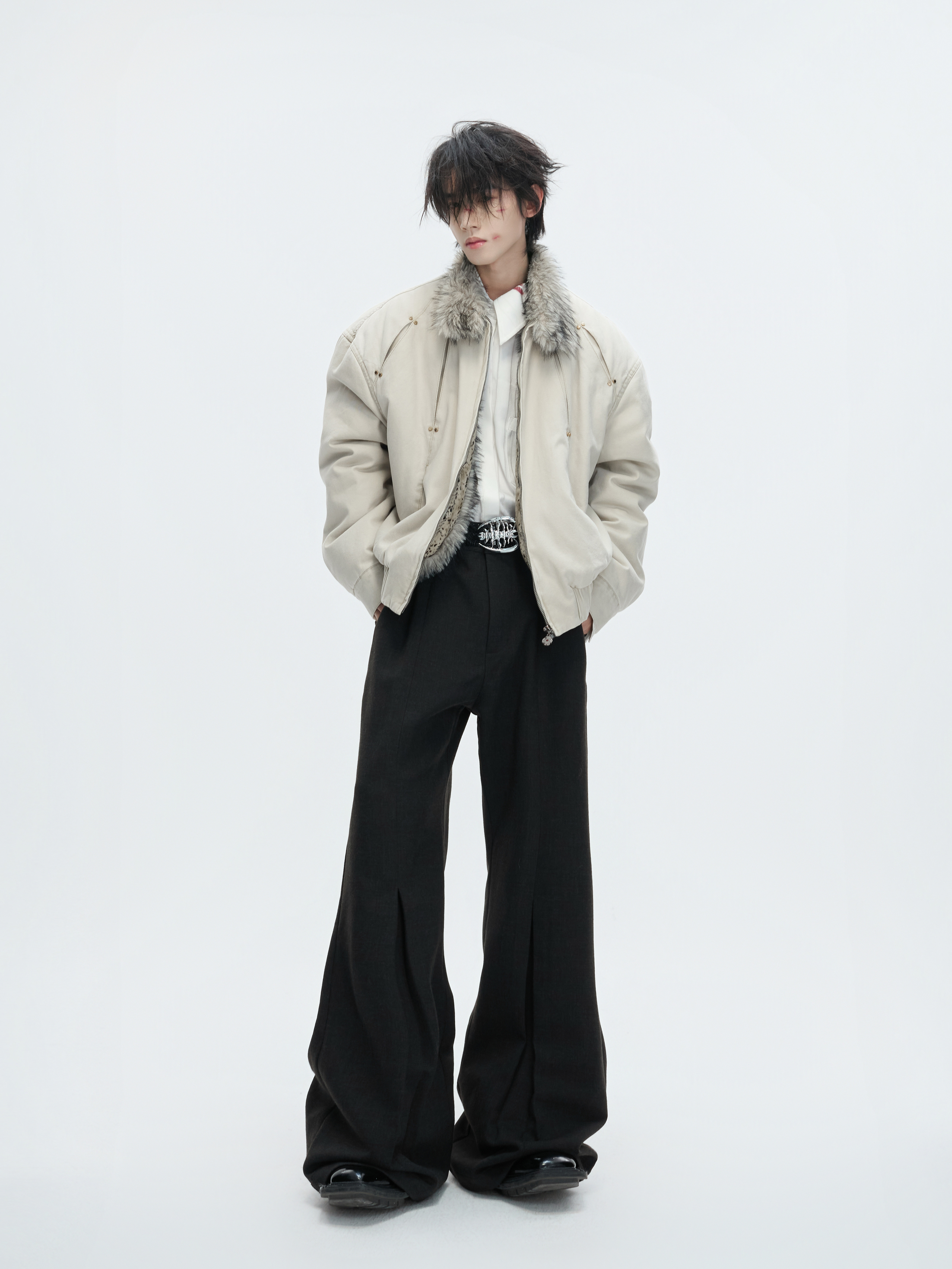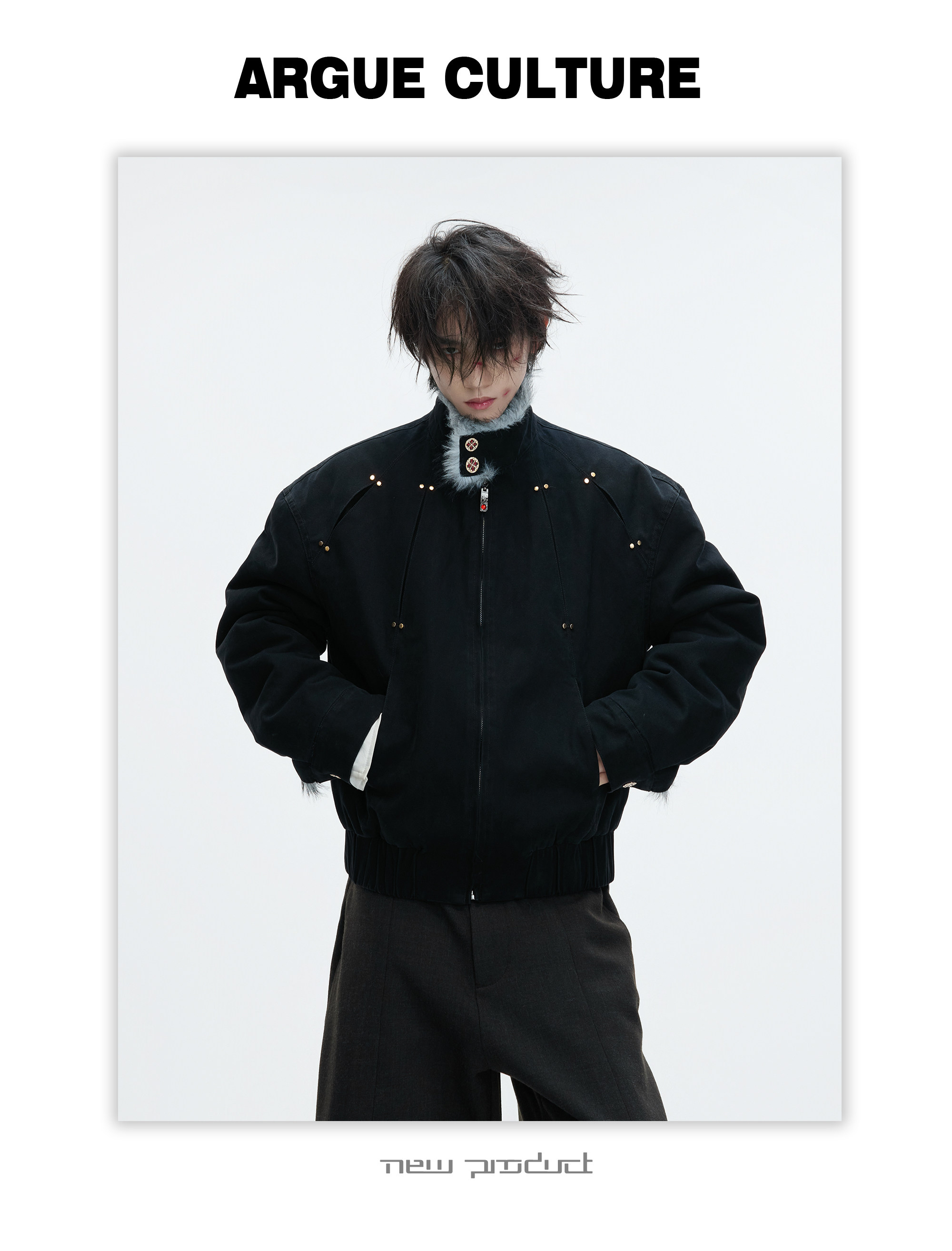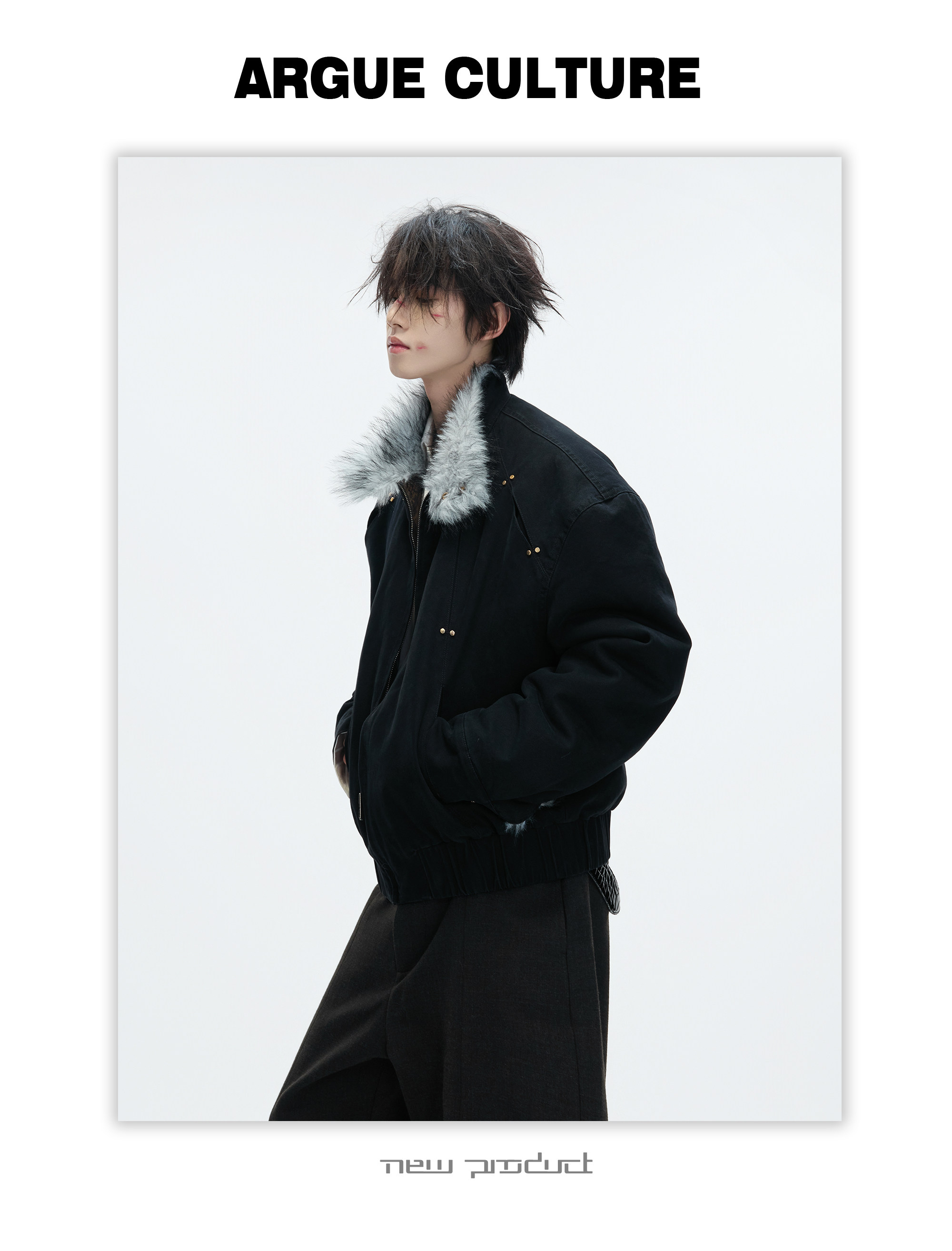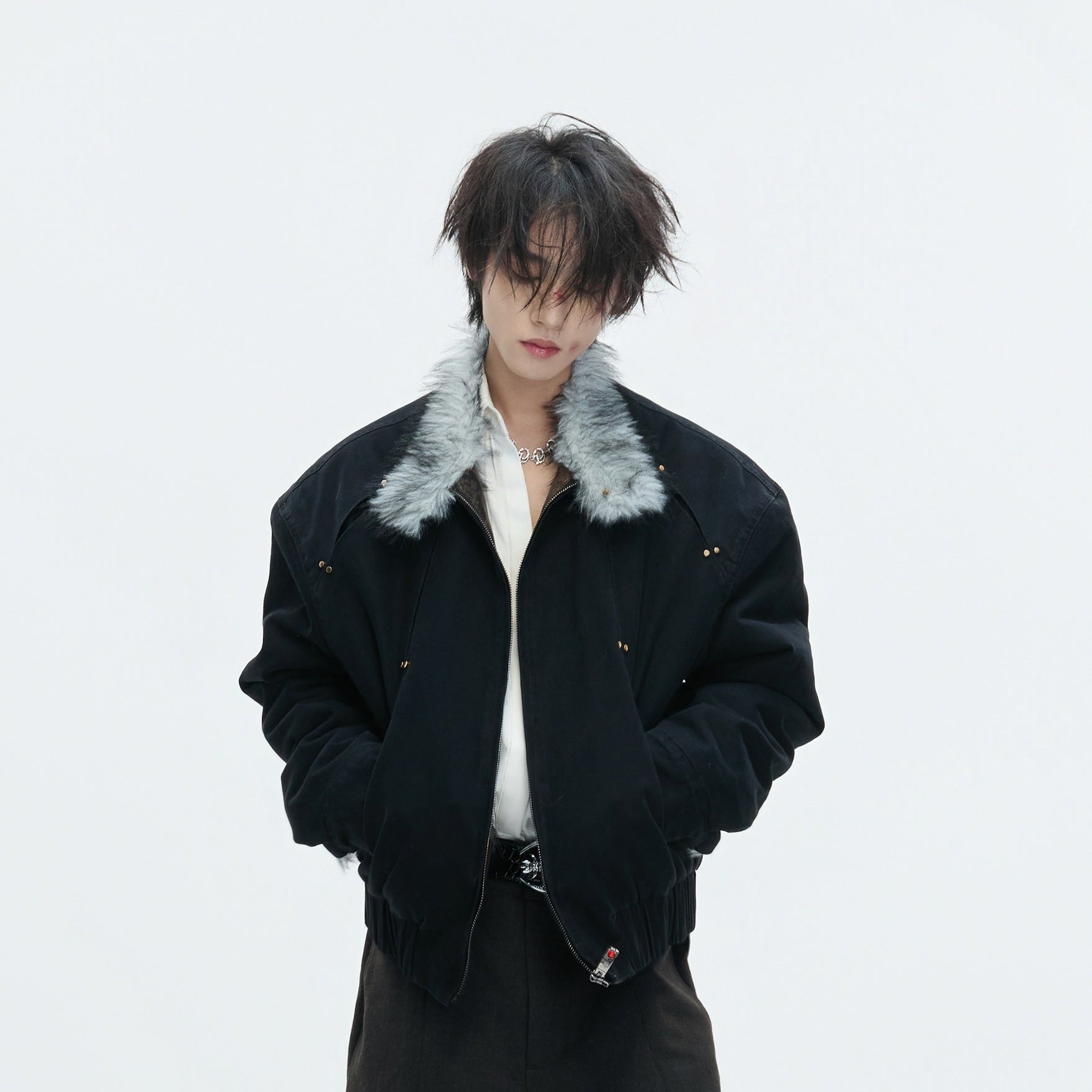 Fake Fur Collar Heavyweight Wash Canvas Puffer Jacket WN22624