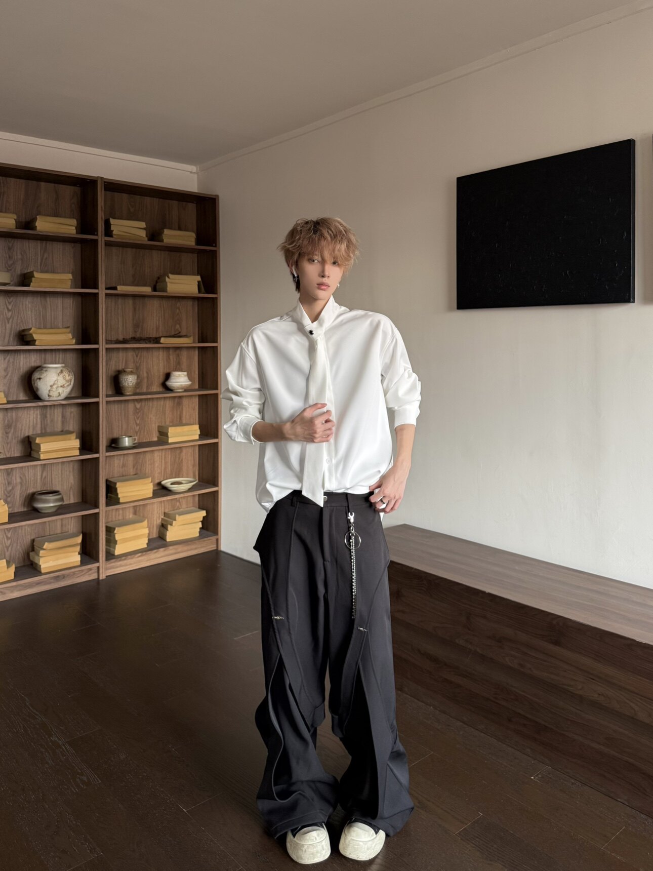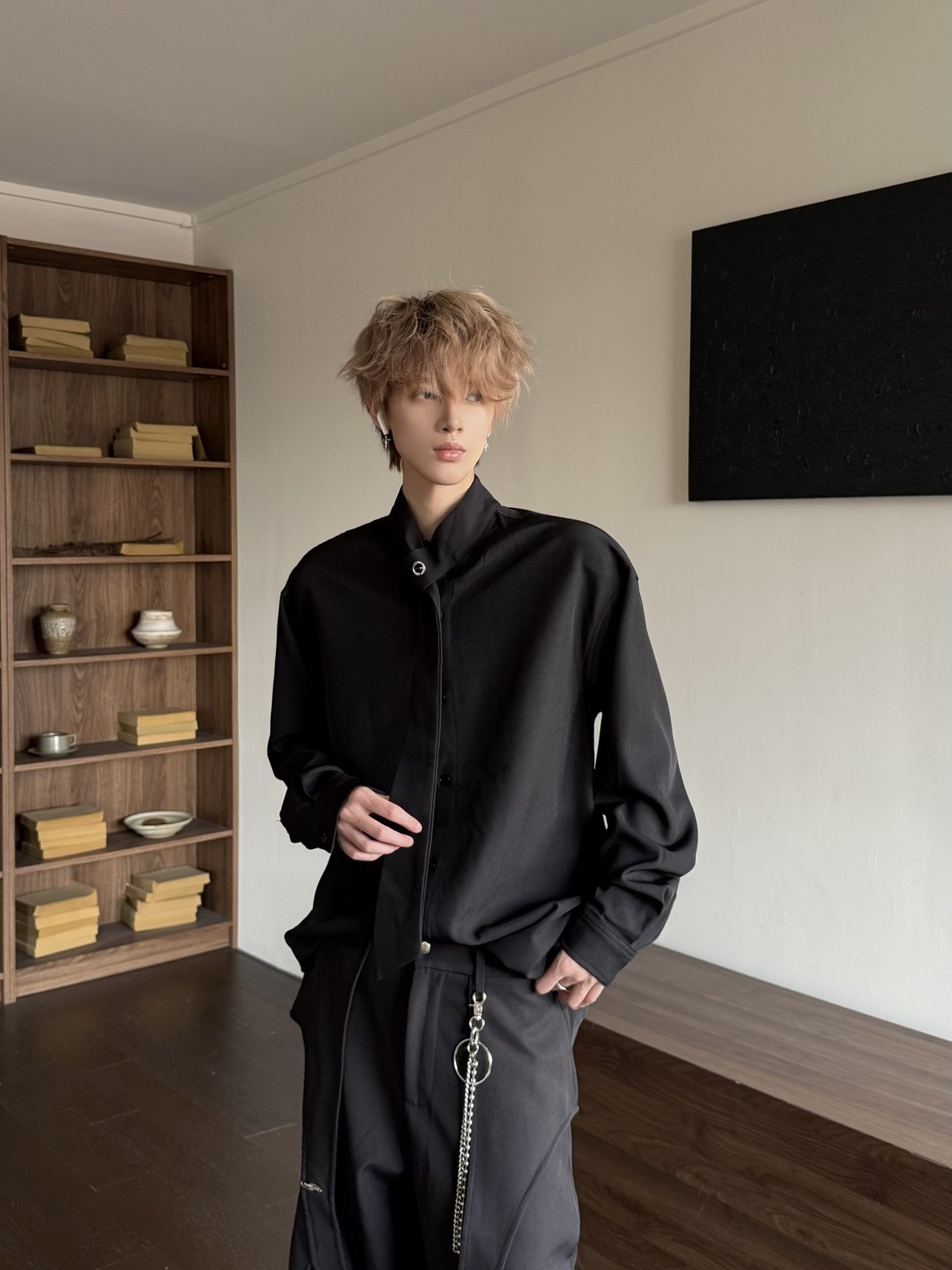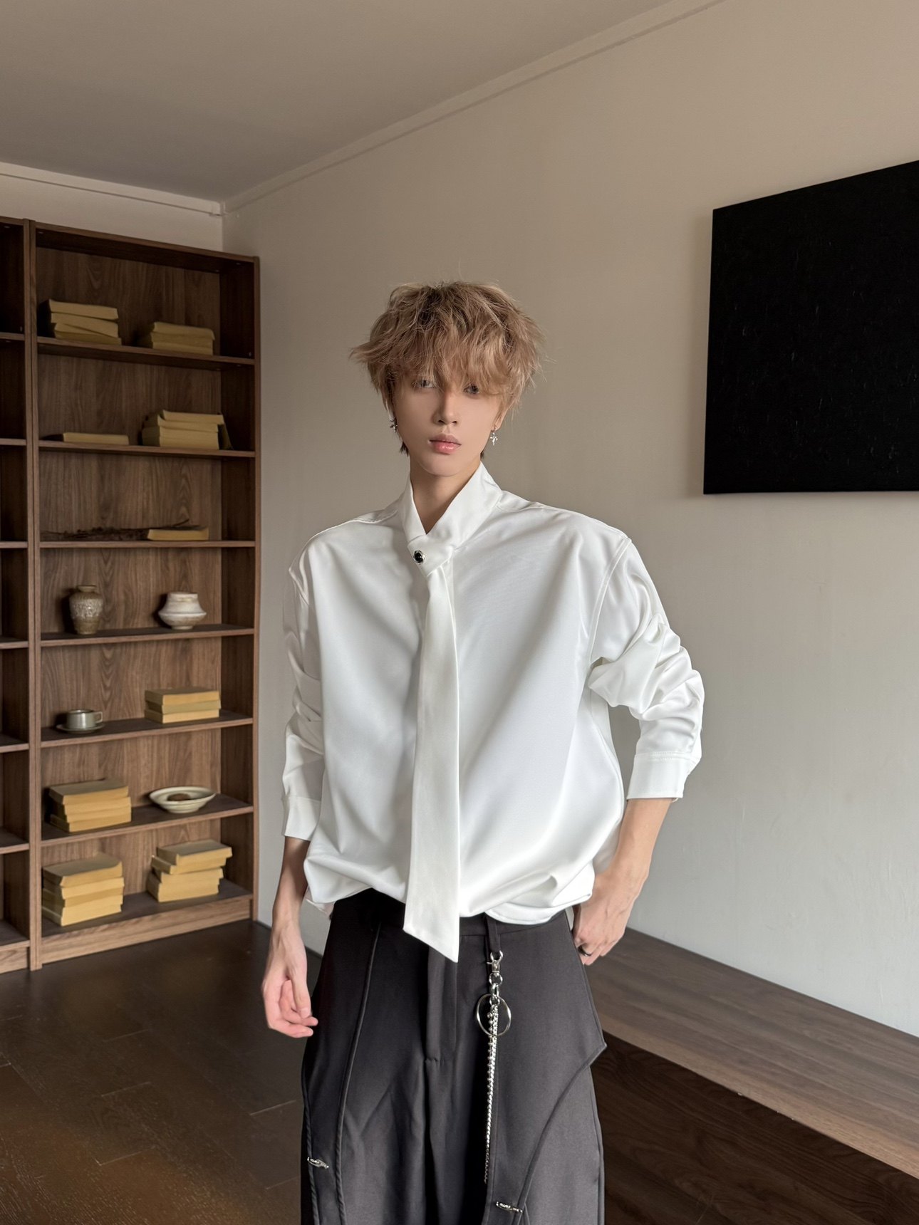 Design Tie Detail Oversize Long Sleeve Shirt WN23155