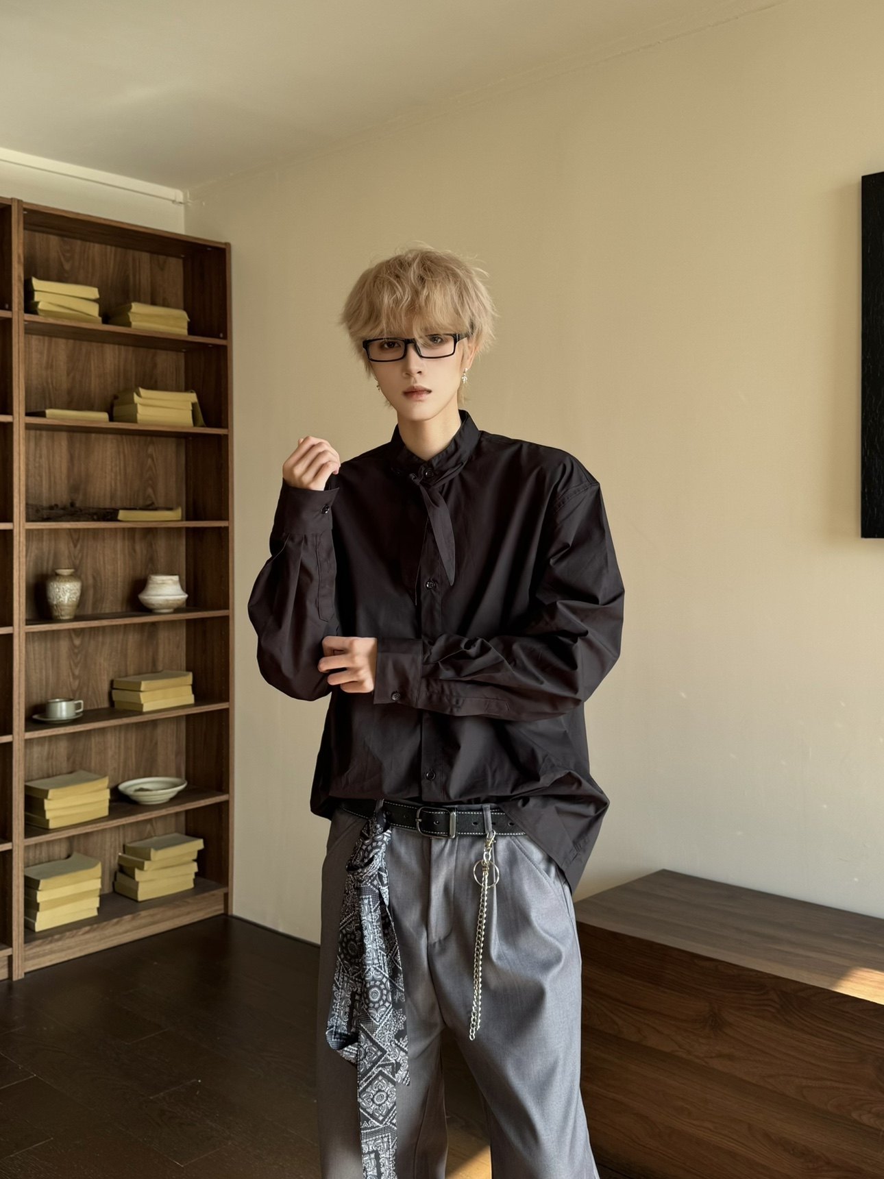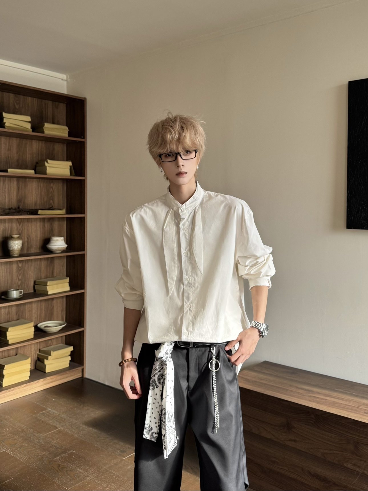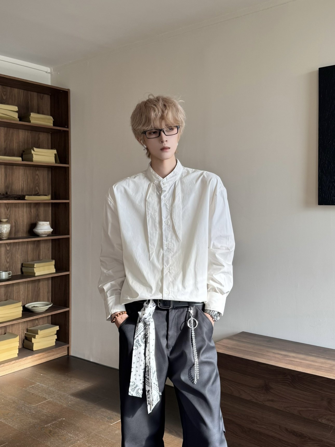 Elegant Scarf Detail Long Sleeve Shirt WN23162