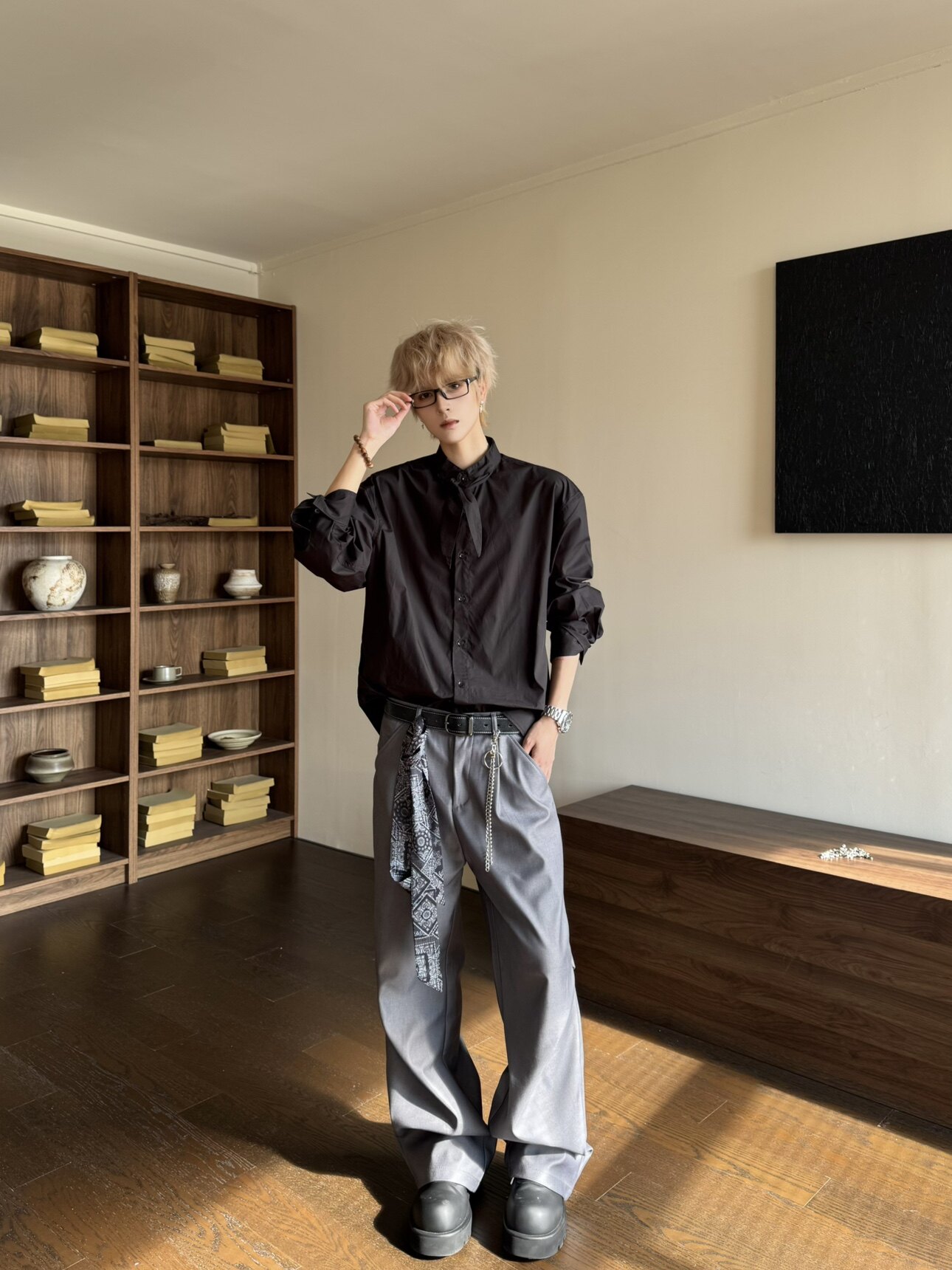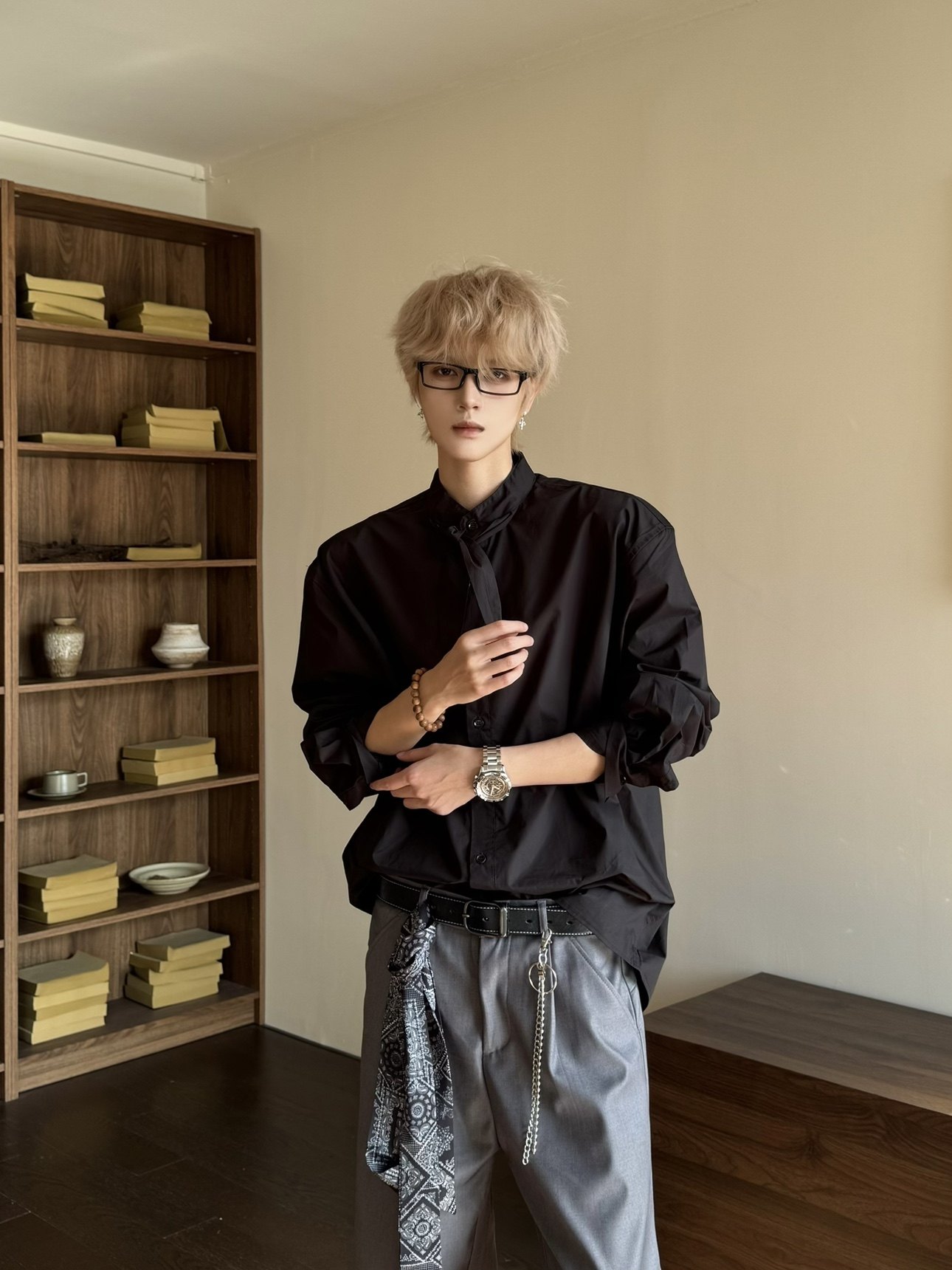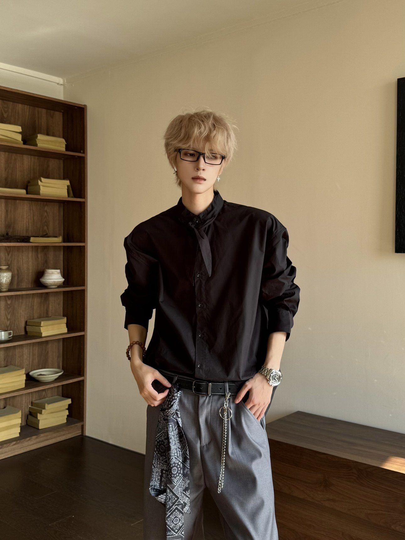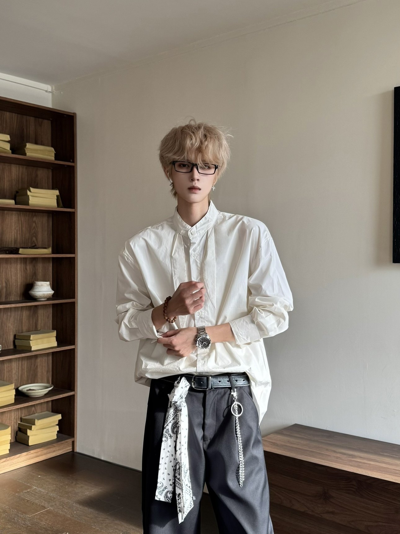 Elegant Scarf Detail Long Sleeve Shirt WN23162