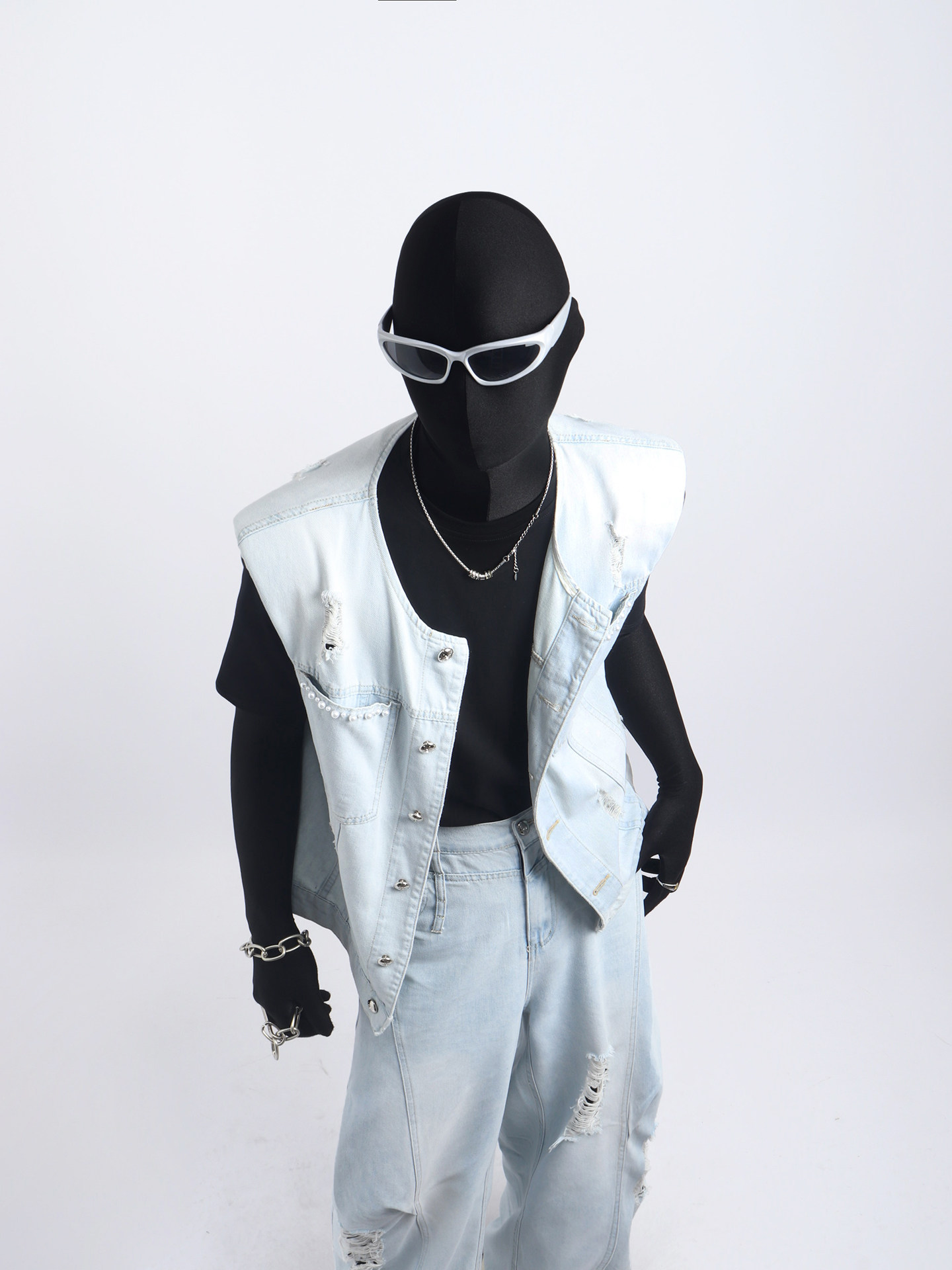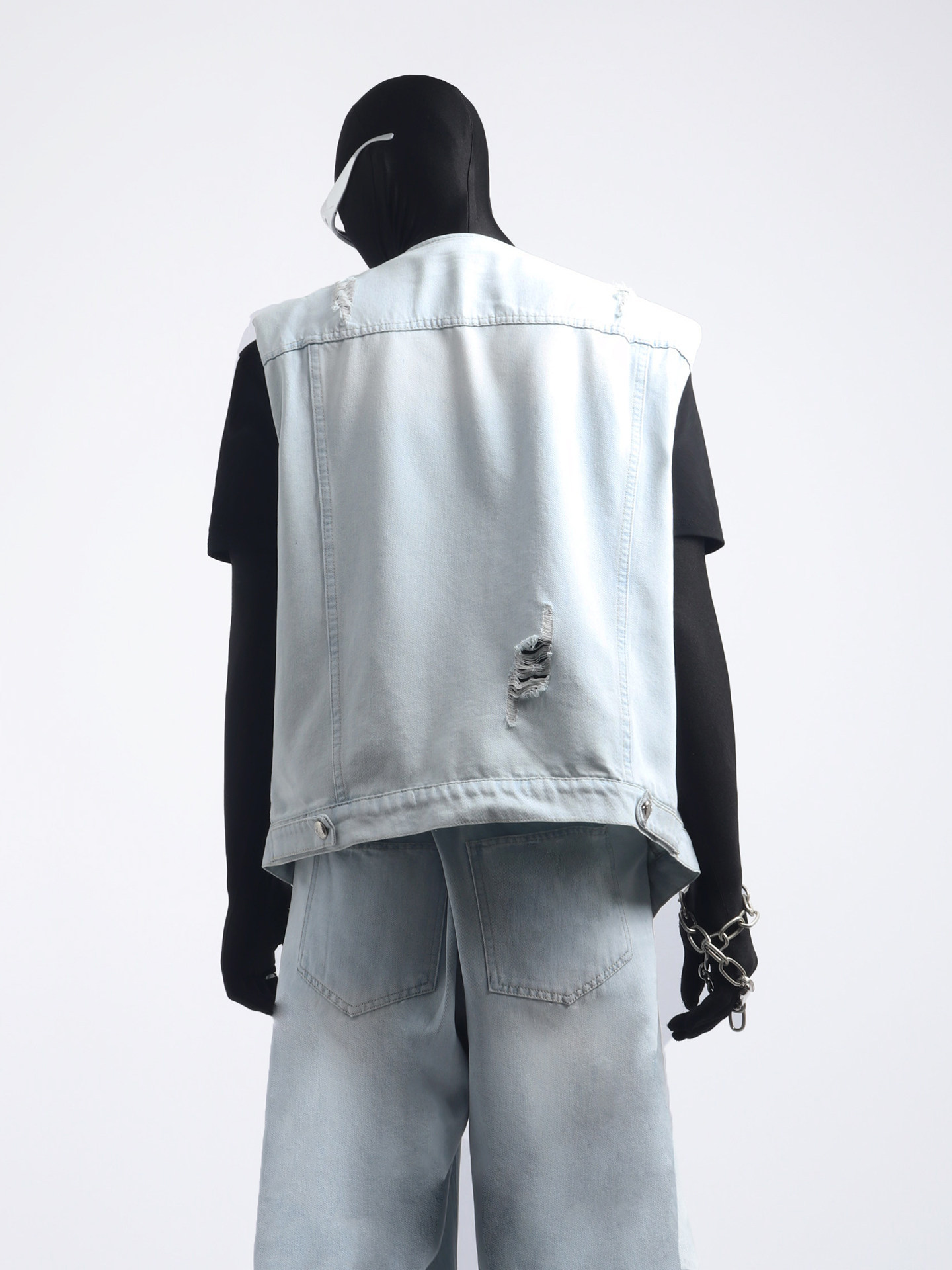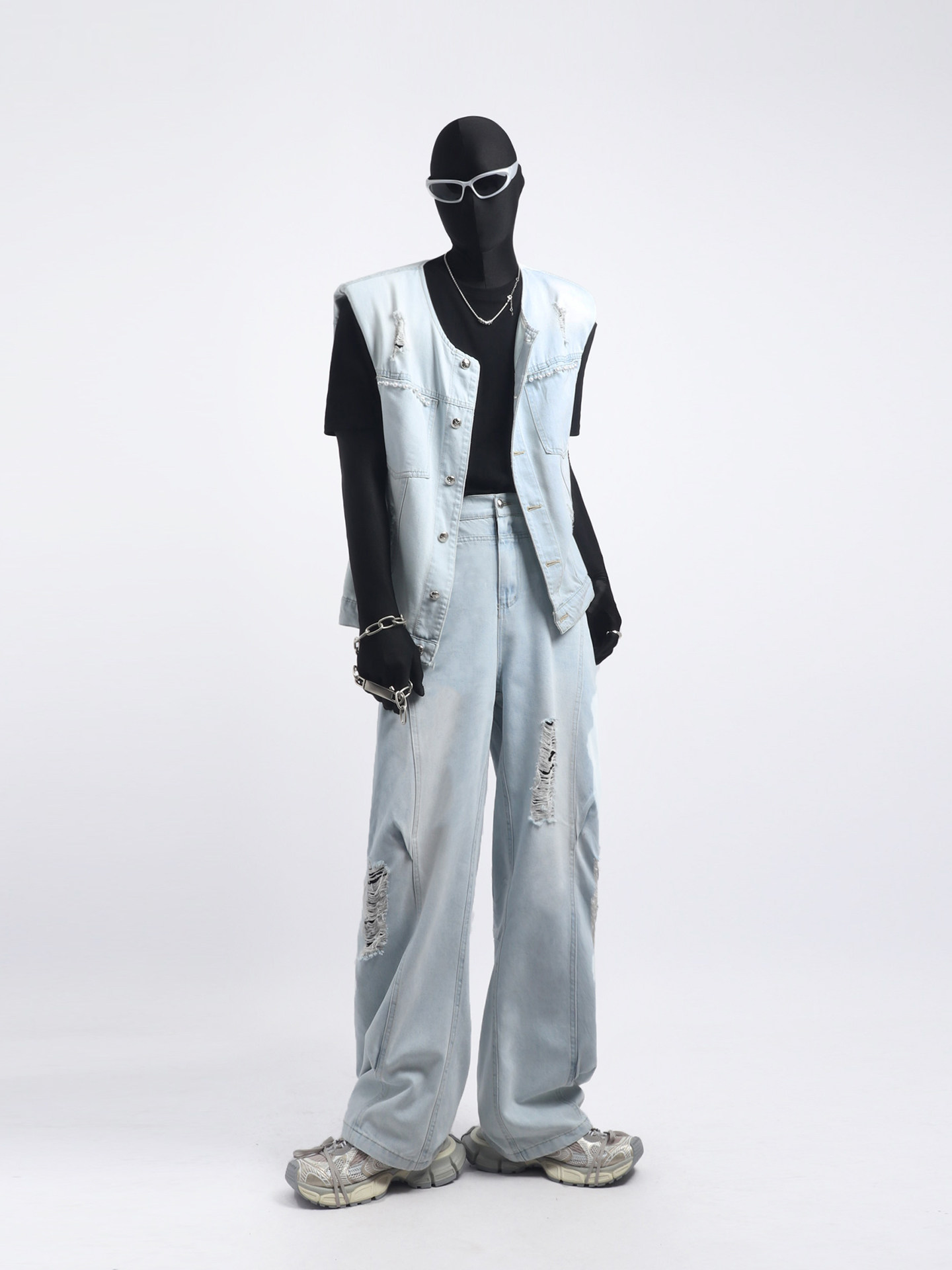 Denim Oversize Vest & Damage Wide Leg Denim Jeans Setup WN23737