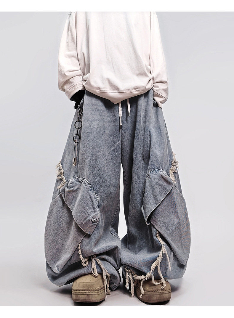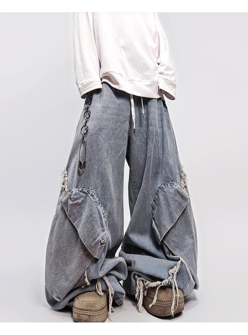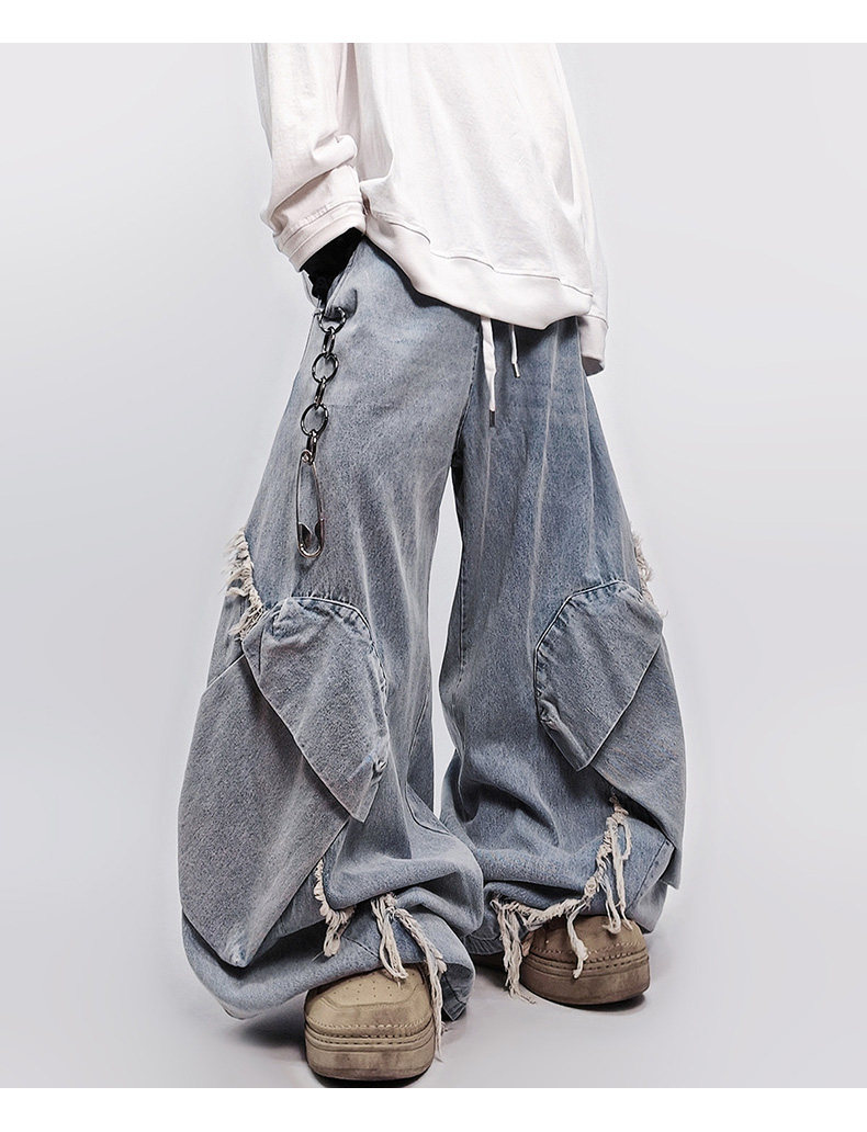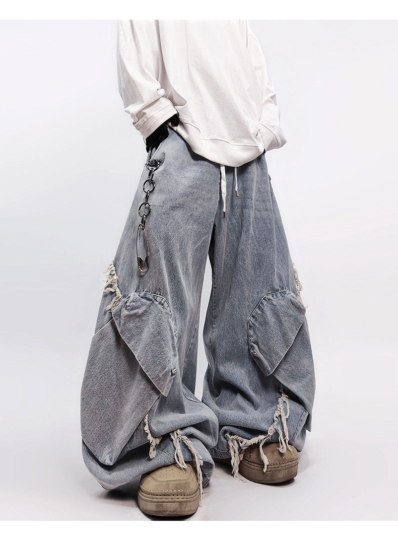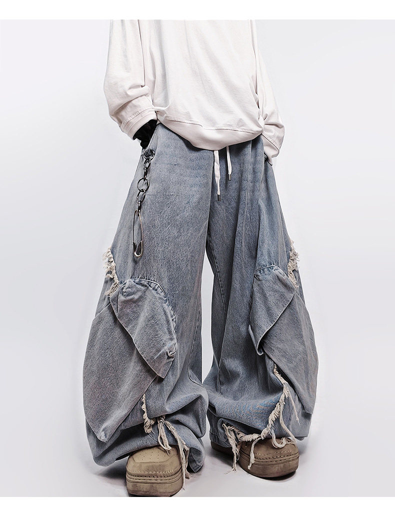 Curved Cut Wide Leg Cargo Denim Jeans WN23992