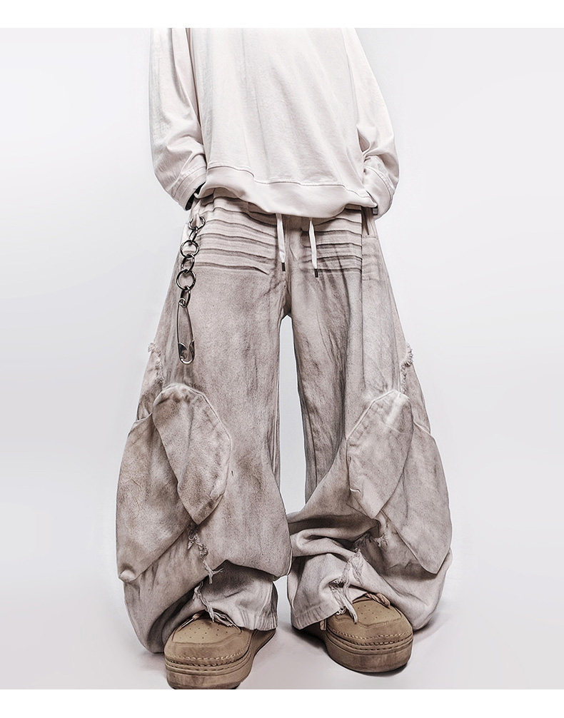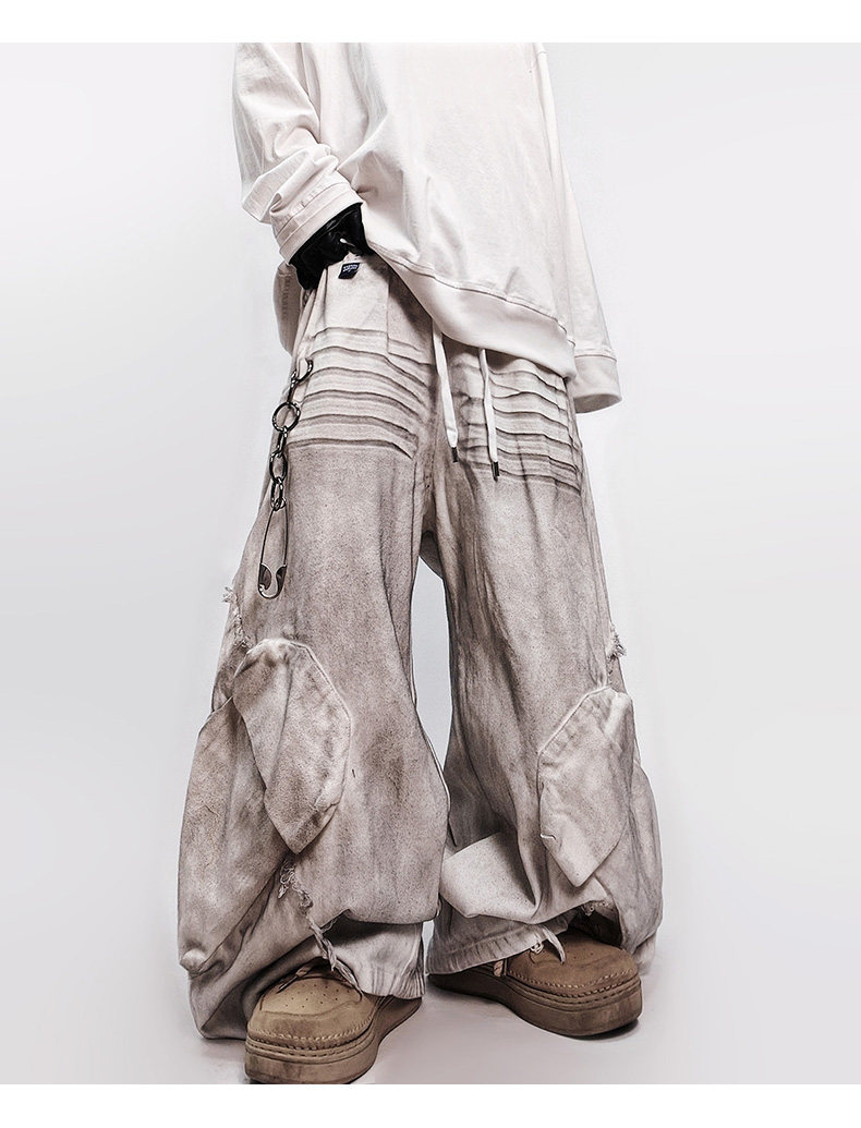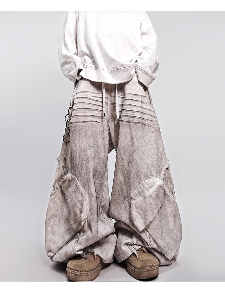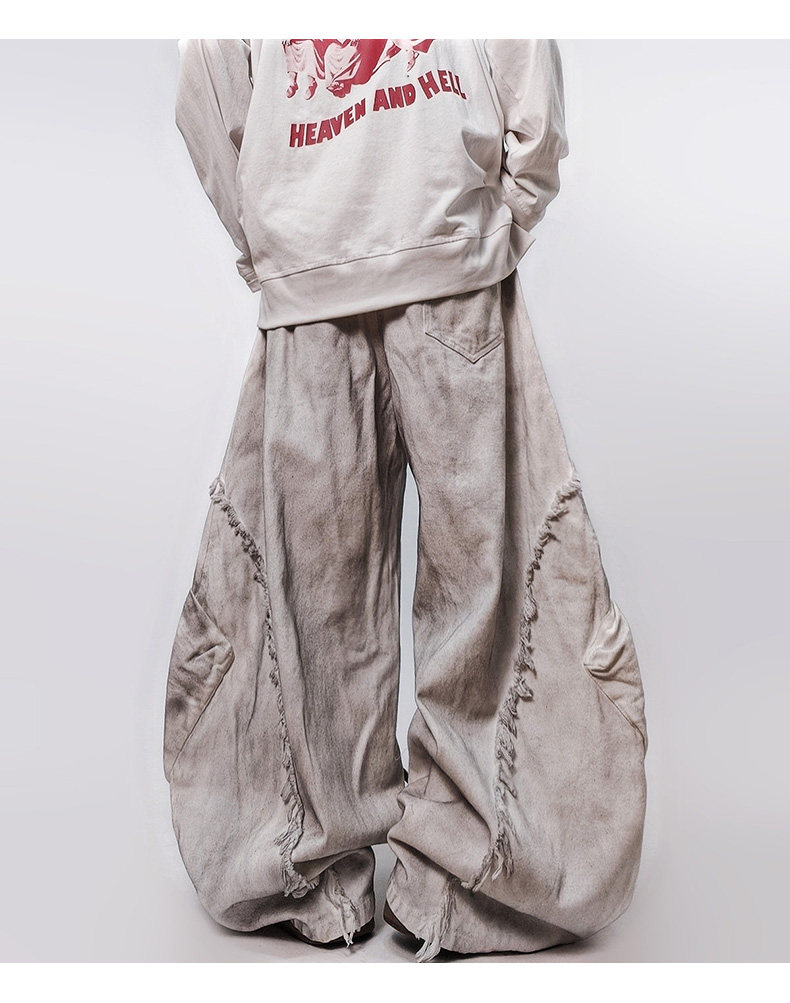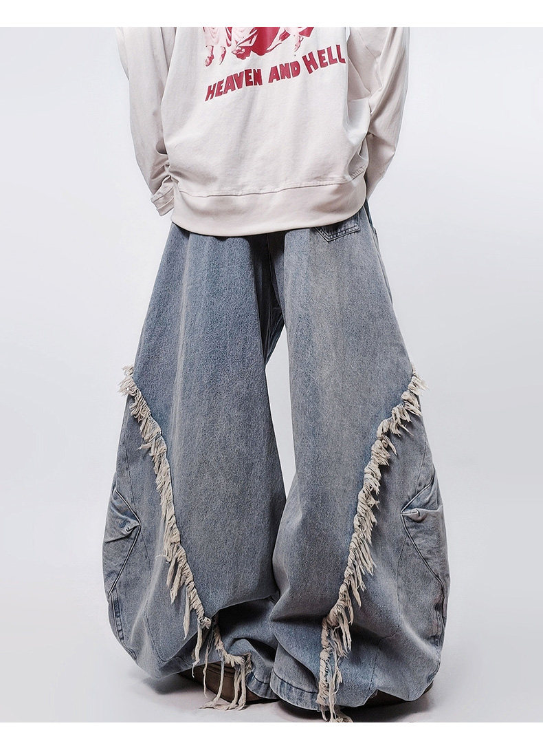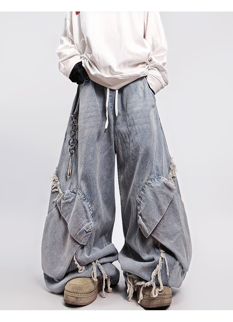 Curved Cut Wide Leg Cargo Denim Jeans WN23992