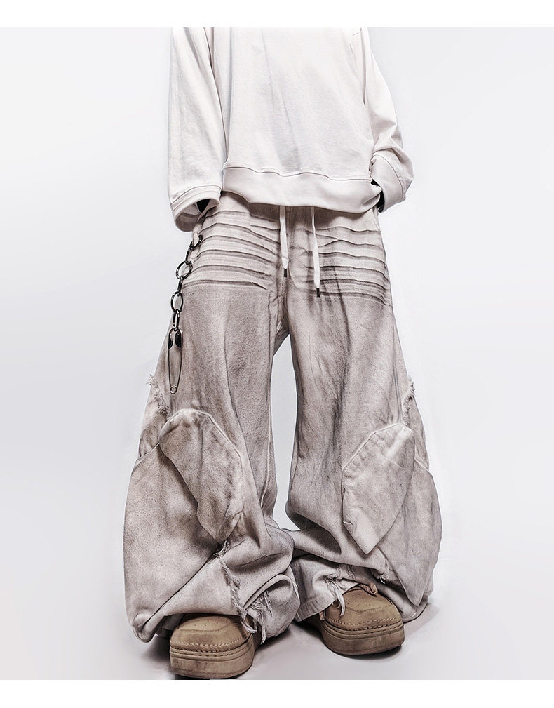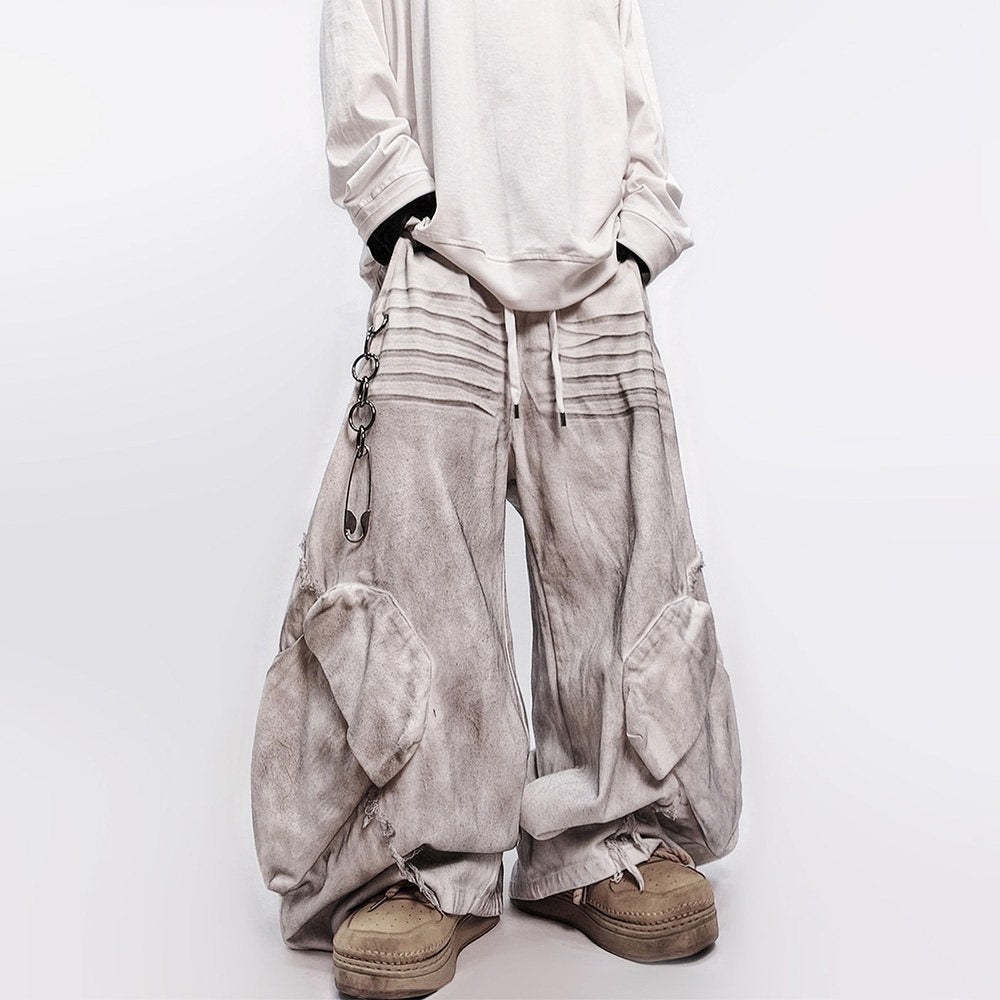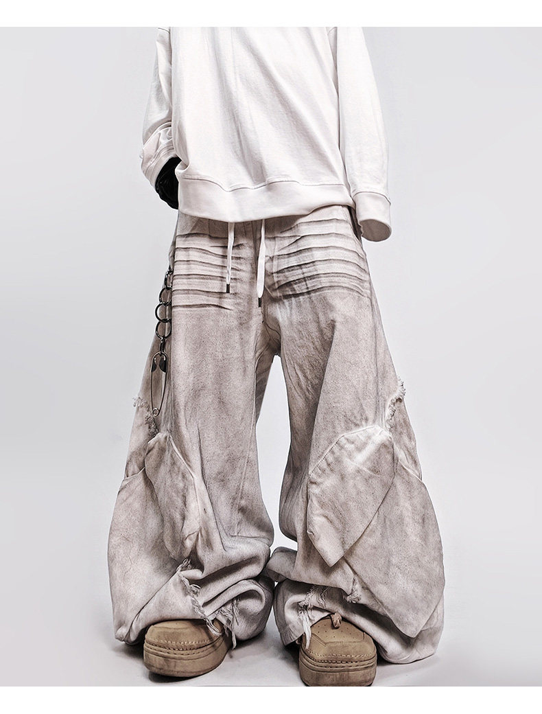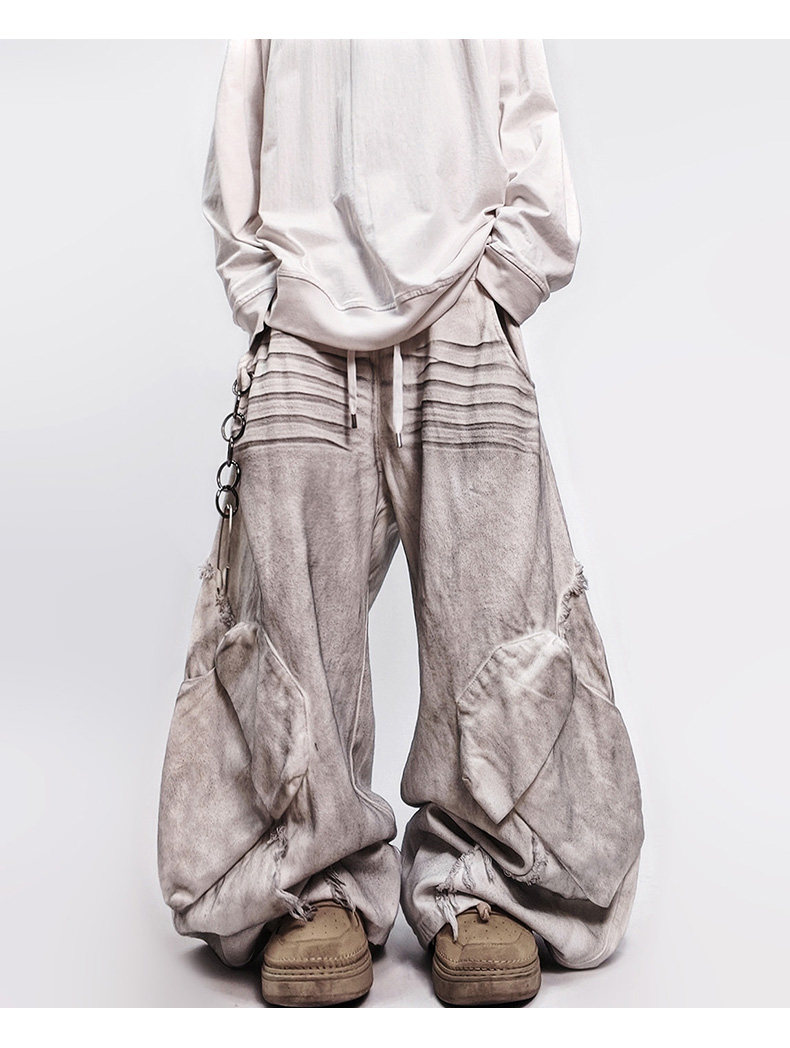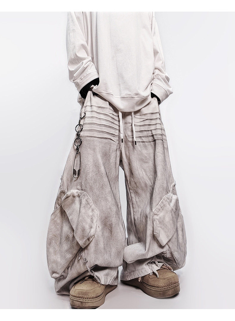 Curved Cut Wide Leg Cargo Denim Jeans WN23992
